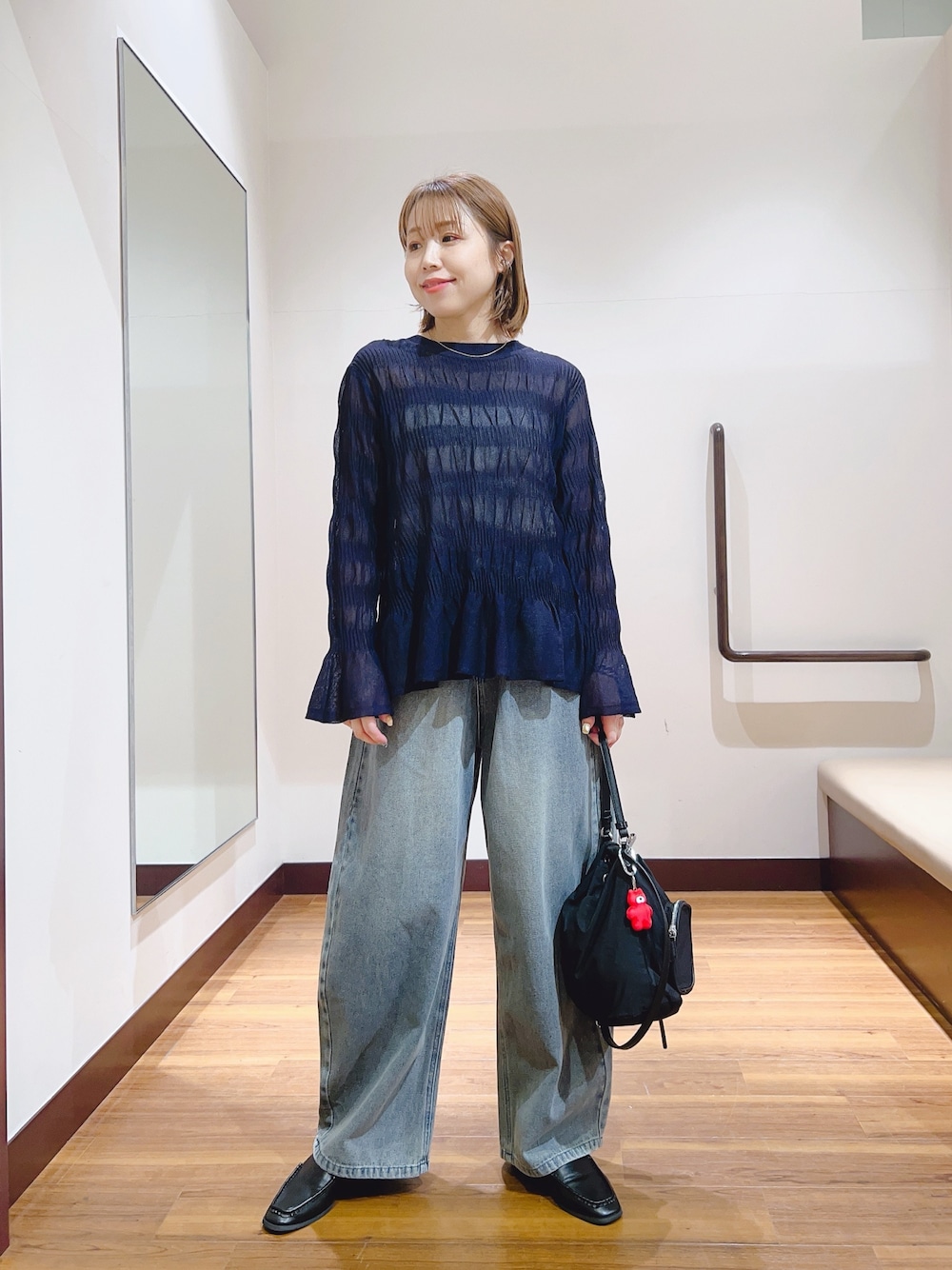 生地全体にシャーリングを施し、立体感のある表情に仕上げたニットトップス。無地ながら奥行きのあるテクスチャーが、シンプルなスタイリングにも自然な華やかさをプラスします。袖口に向かって広がるフレアスリーブは、動くたびに軽やかに揺れ、手元を女性らしく演出。ほんのり透け感のある素材で、インナーとのレイヤードも楽しめます。どんなテイストのボトムとも合わせやすく、デイリーにもお出かけにも活躍する一枚です。