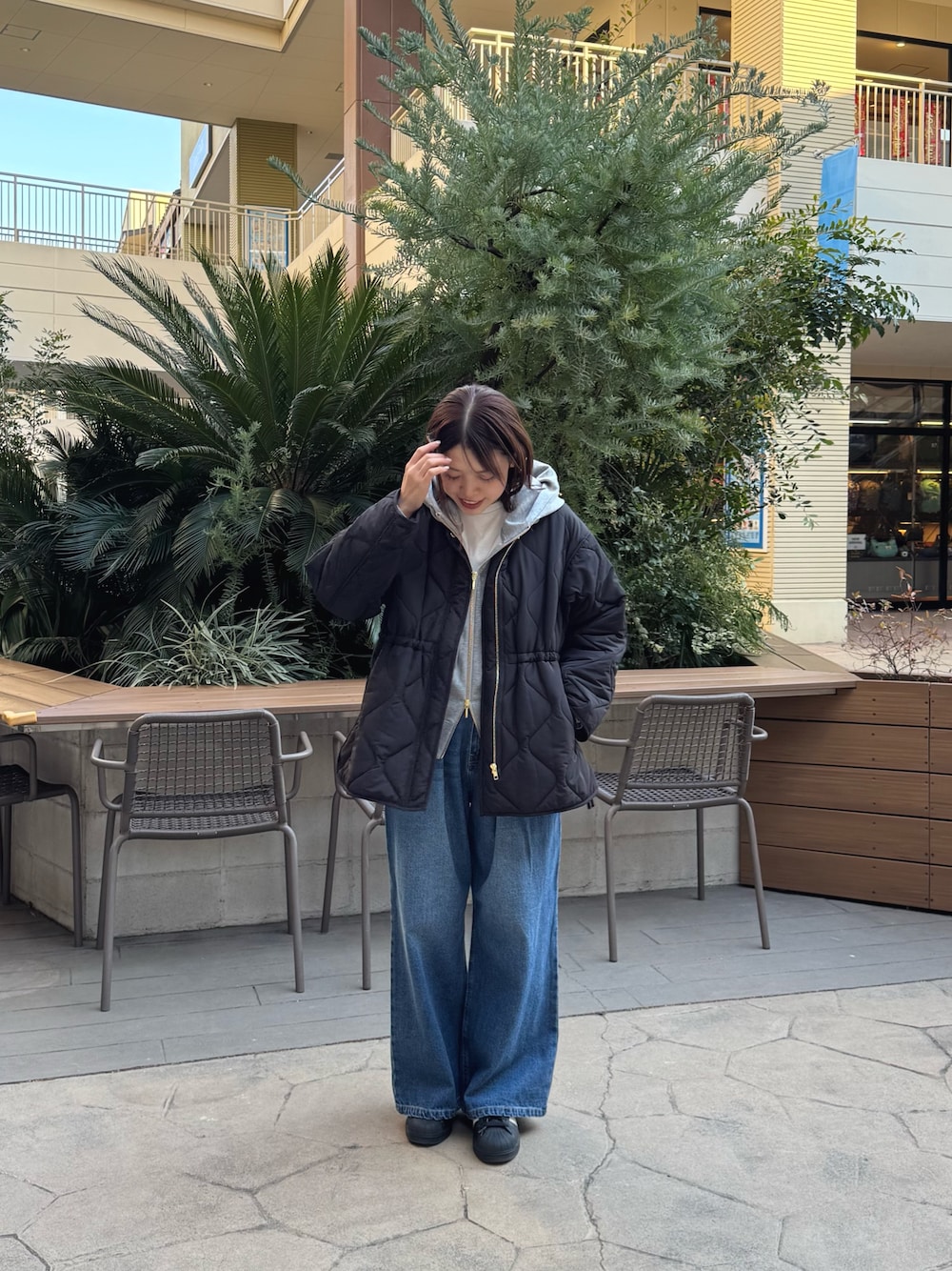 次の季節に向けて手に取りたい、軽やかな中綿ブルゾン。 程よい厚みの中綿が、肌寒い春先にも暖かさをキープしながら、見た目はすっきりと軽快な印象に仕上げます。 ノーカラー仕様で、パーカーやハイネックとも好相性。 首元のレイヤードを邪魔せず、着こなしの幅を広げてくれます。 キルティングラインの立体感とサイドオープンの抜け感が、横顔や後ろ姿まで印象的に。 ファスナーとドロストでシルエット調整ができ、その日の気分に合わせた着こなしが楽しめる一着です。