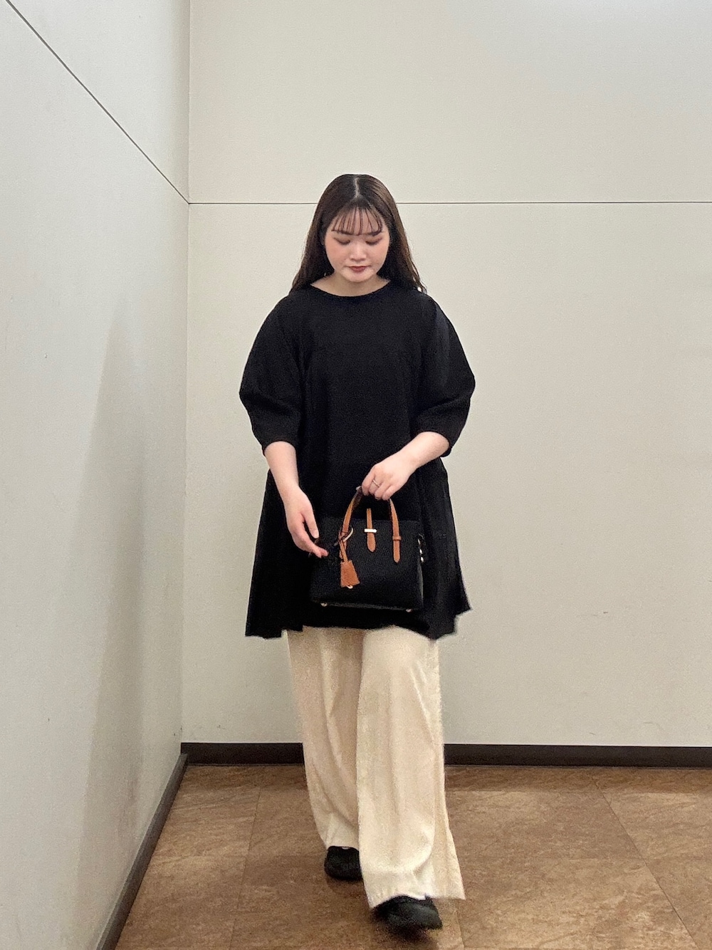 ワイドシルエットでぴったりしすぎないサイズ感なので、足さばきがよく座った時にも窮屈感は感じにくいアイテムです。