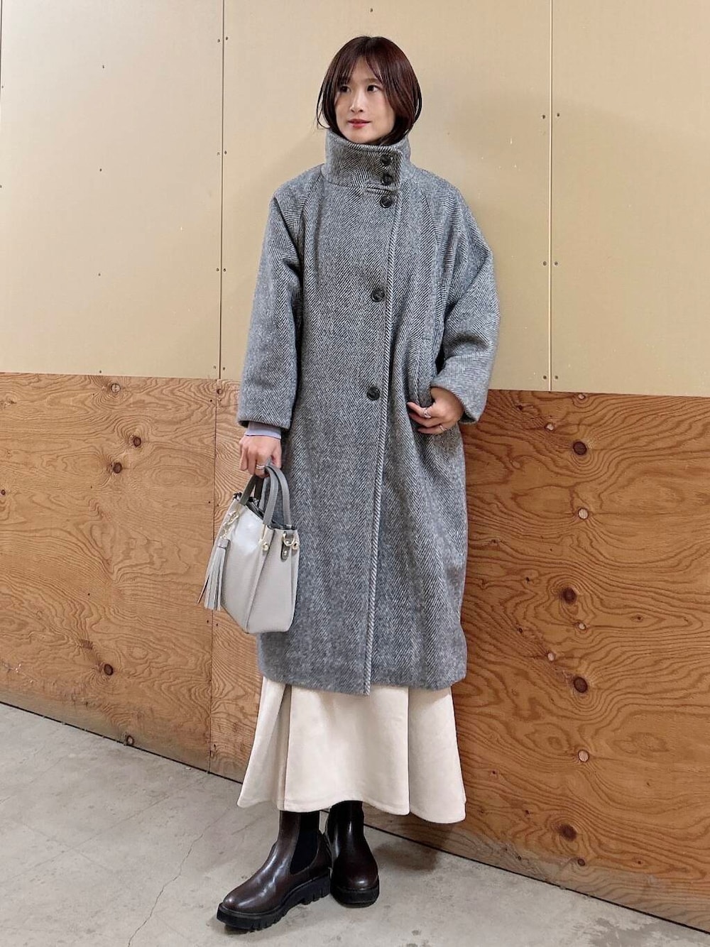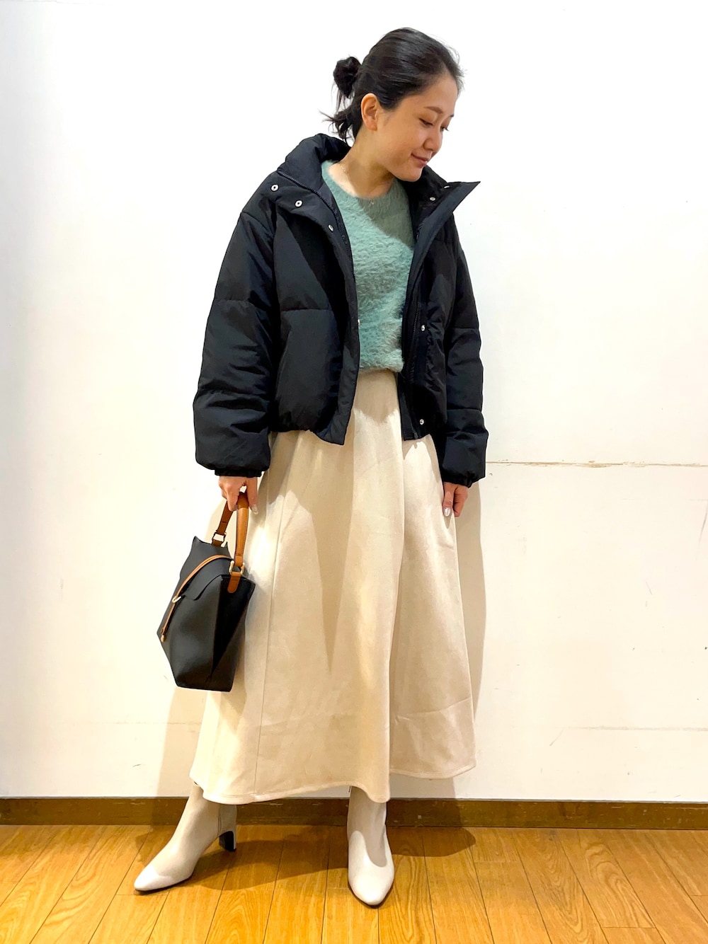 毎年好評の、柔らかい手触りのフェイクスエード素材で仕立てたロングフレアスカートが今シーズンも登場。腰周りはすっきりとしたデザインで、切替ラインから裾にかけて広がるフレアシルエットが女性らしいニュアンスを演出。華奢見せが叶うのも嬉しいポイントです。