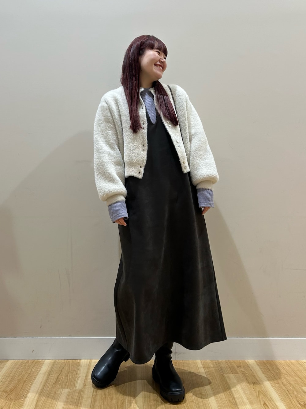 2枚の生地を合わせたダブルフェイスデザインがポイントのニットカーディガン。フワフワとした起毛感のある表地は、一気にシーズンムードのあるスタイリングを演出してくれます。裏側はチクチク感のないしっとりとしたハイゲージ編みのニットを合わせ、着心地の良さにこだわりました。2個ずつ施したボタンデザインで程よくクセのあるディテールに仕立てました。
