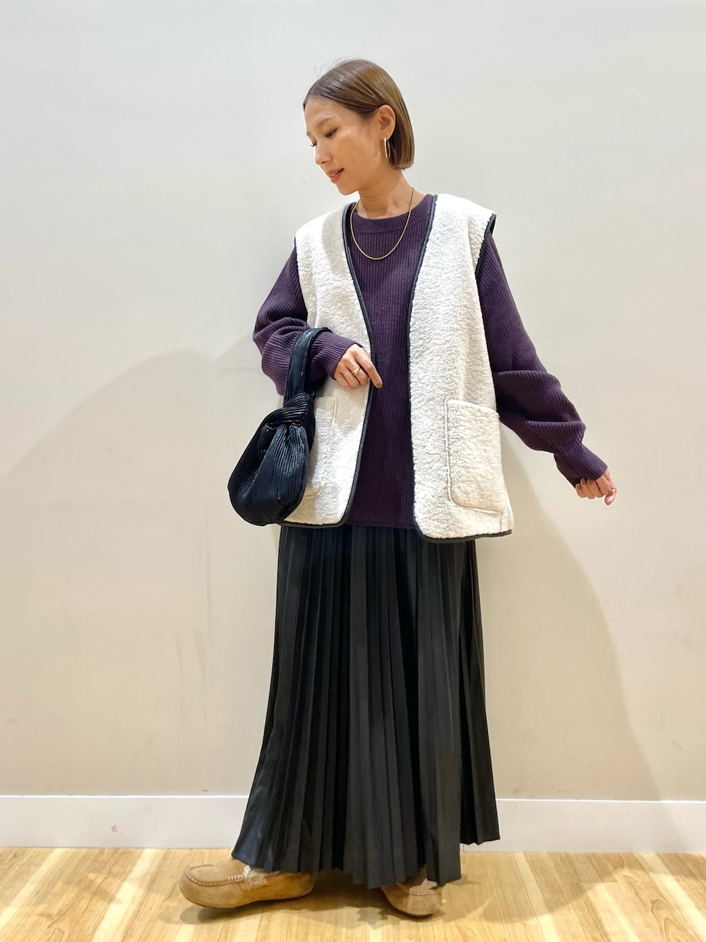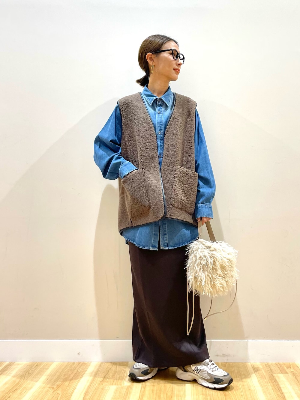 もこもことしたボア生地にパイピングデザインを加えてメリハリのあるディテールに仕立てたベスト。裏返せばフェイクムートン生地のベストとしても着用可能な2WAYデザインが一番の魅力!1着で2タイプの着こなしが叶うオススメアイテムです。ゆったりとしたシルエットなので、厚手のスウェットやニットとも好相性◎大きめのオープンポケットがどちらを表にしても施されているので、スマートフォンや鍵などの小物をサッと収納できる便利さもポイントです。