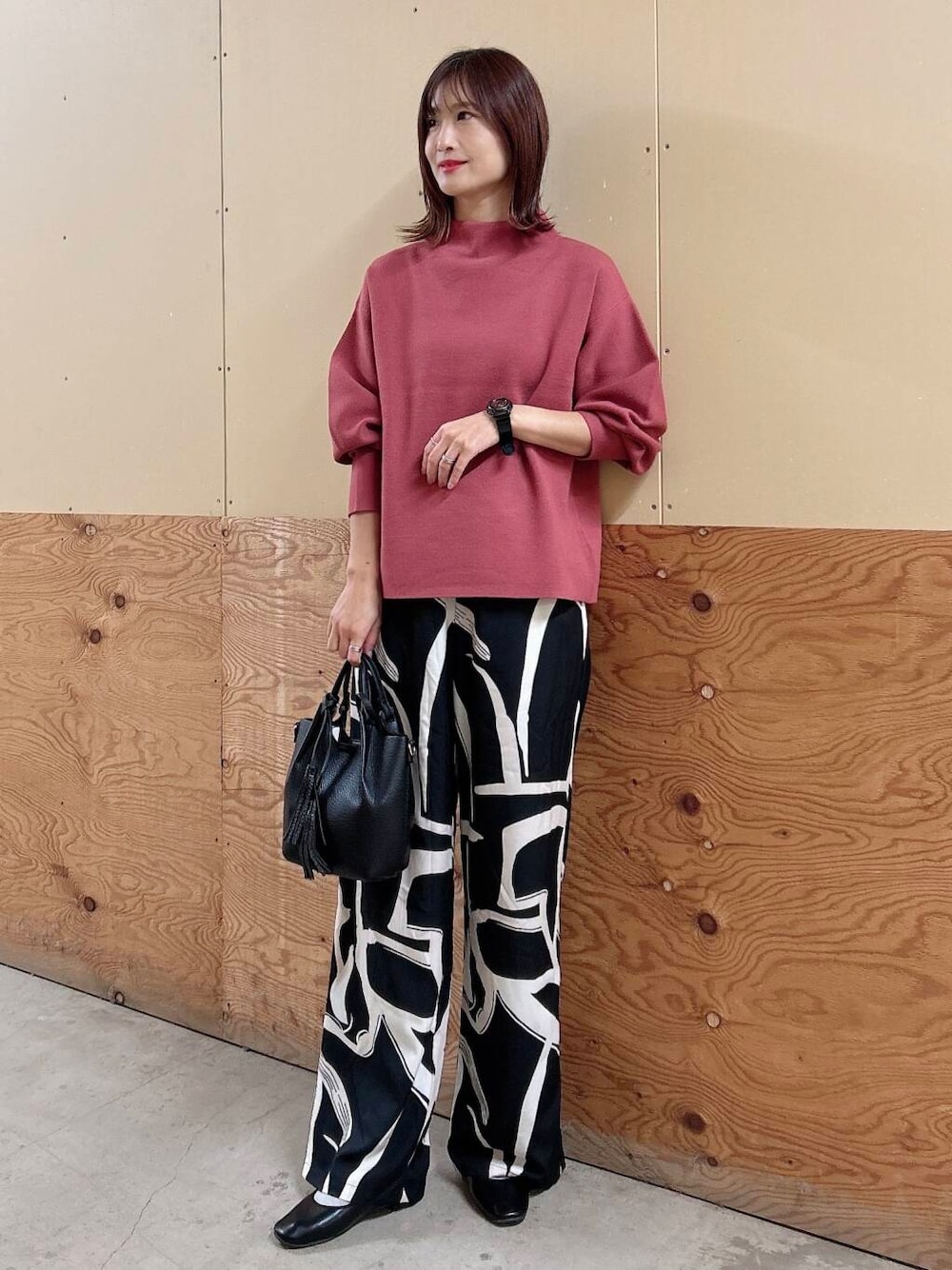 しっとりとした生地で仕立てたボトルネックニット。程よくゆるいネックデザインで、締め付け感がなくストレスフリーな着心地が魅力のひとつ。ゆとりのある着心地ながら、着ぶくれ感なく着用していただけます。