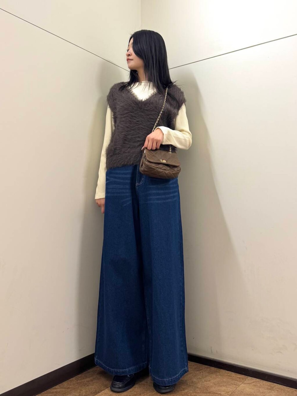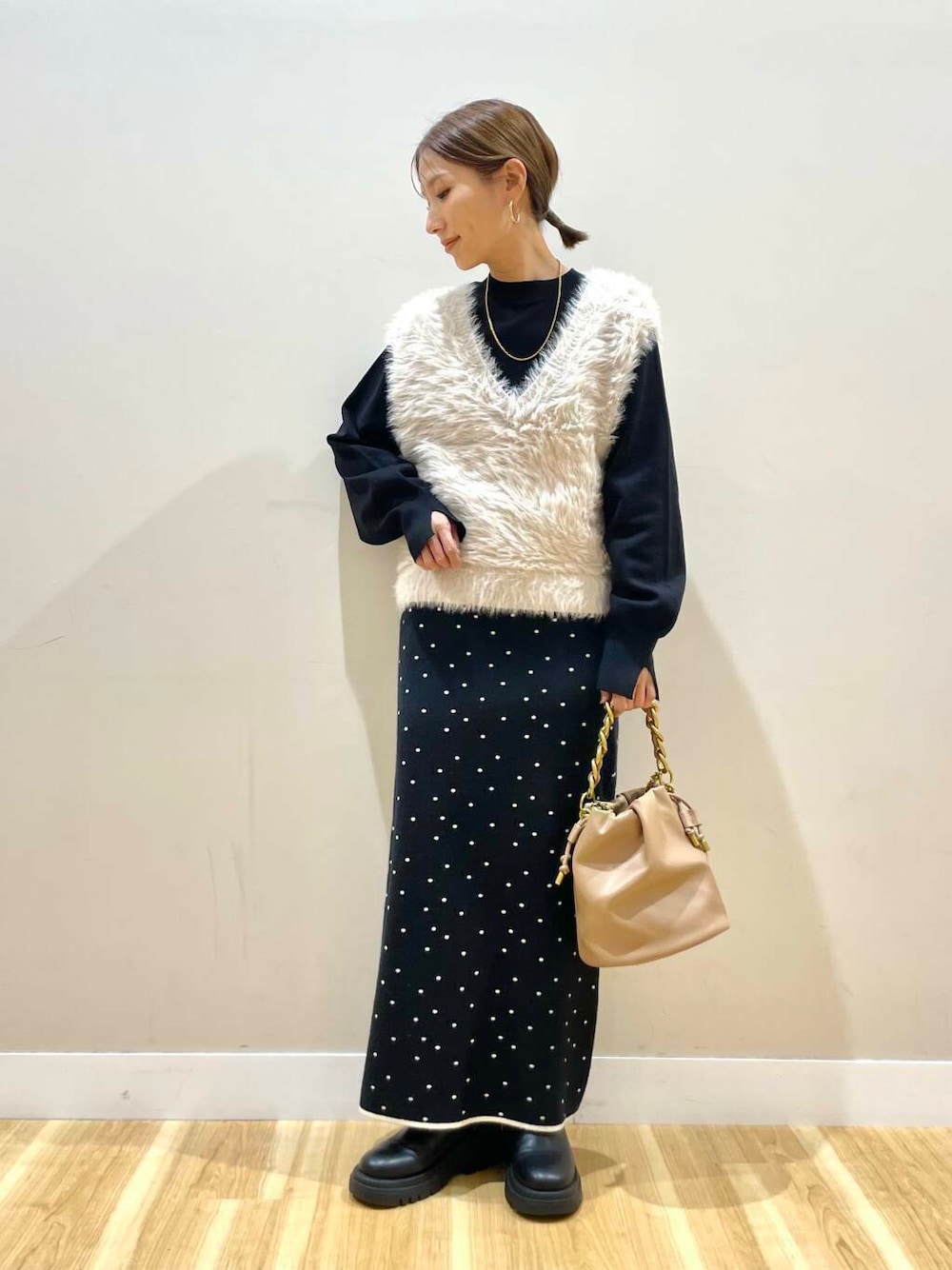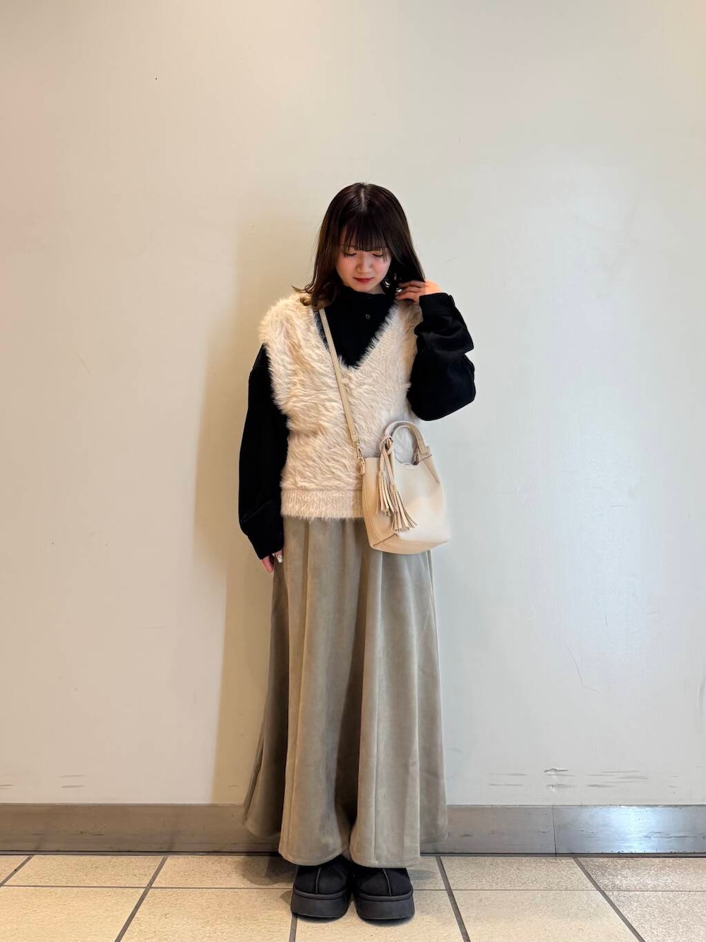 ふんわりとしたシャギー素材が印象的なニットベスト。優しい触り心地と暖かさが魅力で、シーズンレスなレイヤードスタイルにぴったりです。デザインはシンプルながらも存在感があり、インナーに柄物やカラーアイテムを合わせることで、自分らしいコーディネートを楽しめます。