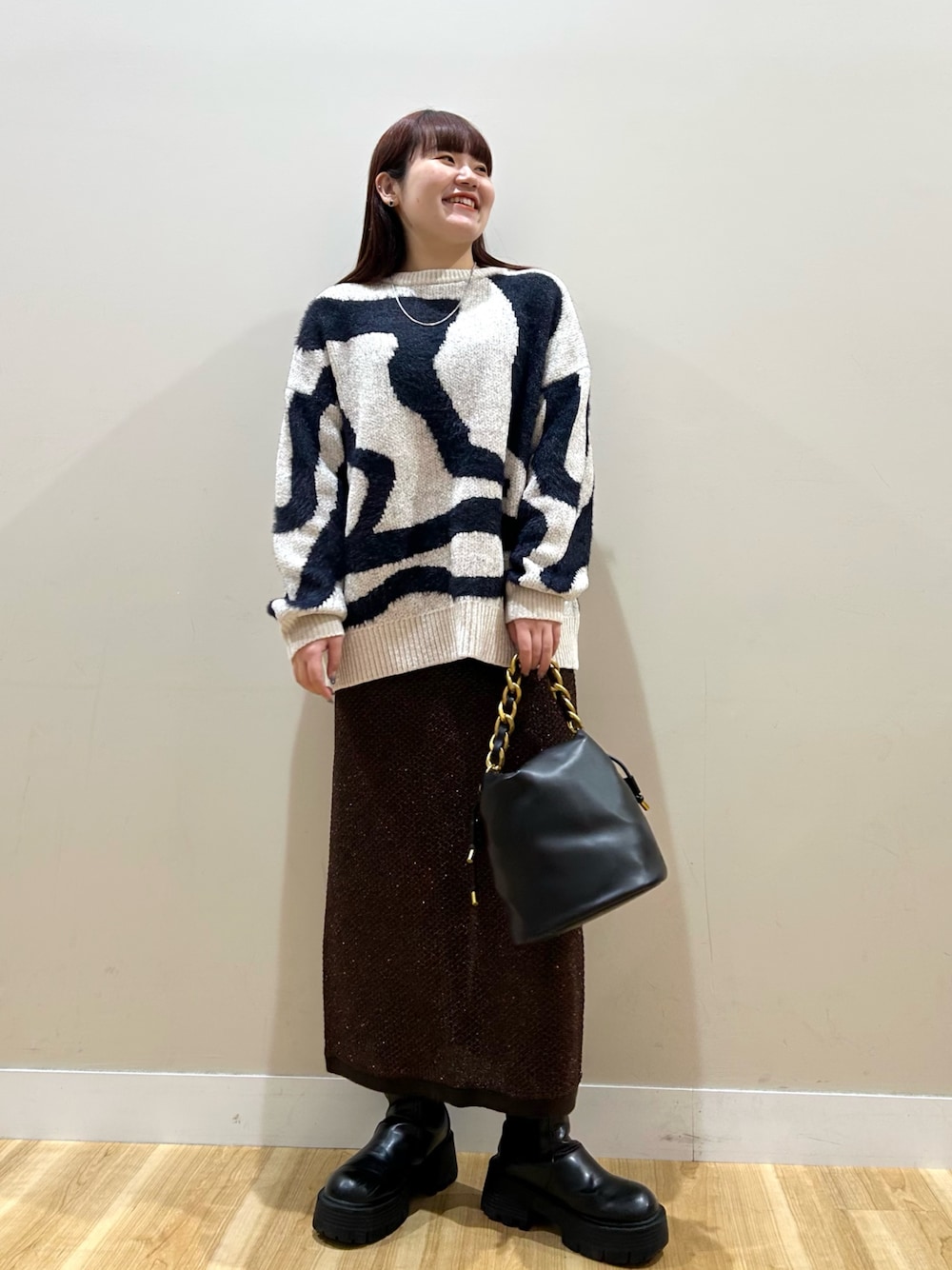 ラメ糸の細やかな煌めきがニット素材ながらほっこりなりすぎず大人っぽいスタイリングを完成させてくれるメッシュデザインのスカート。緩やかにAラインに広がるデザインなので体のラインを拾わず、スッキリとしたルックスと程よいゆとりのある着心地の両方を叶えました。ドレッシーな印象も兼ね備えているので、シャツやブラウスなどカッチリとしたトップスとも好相性ですよ。
