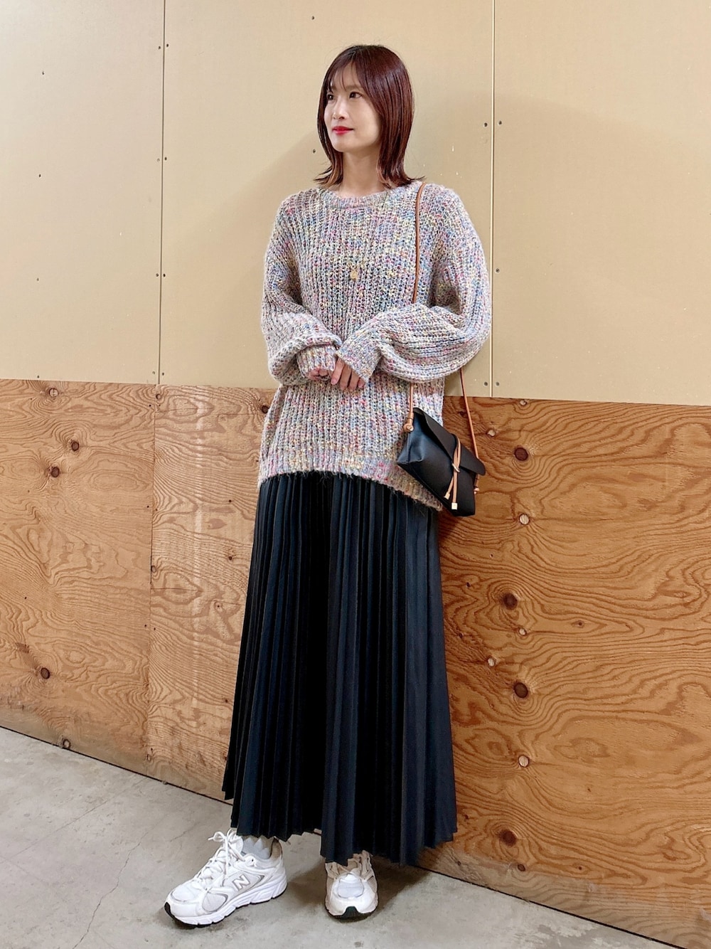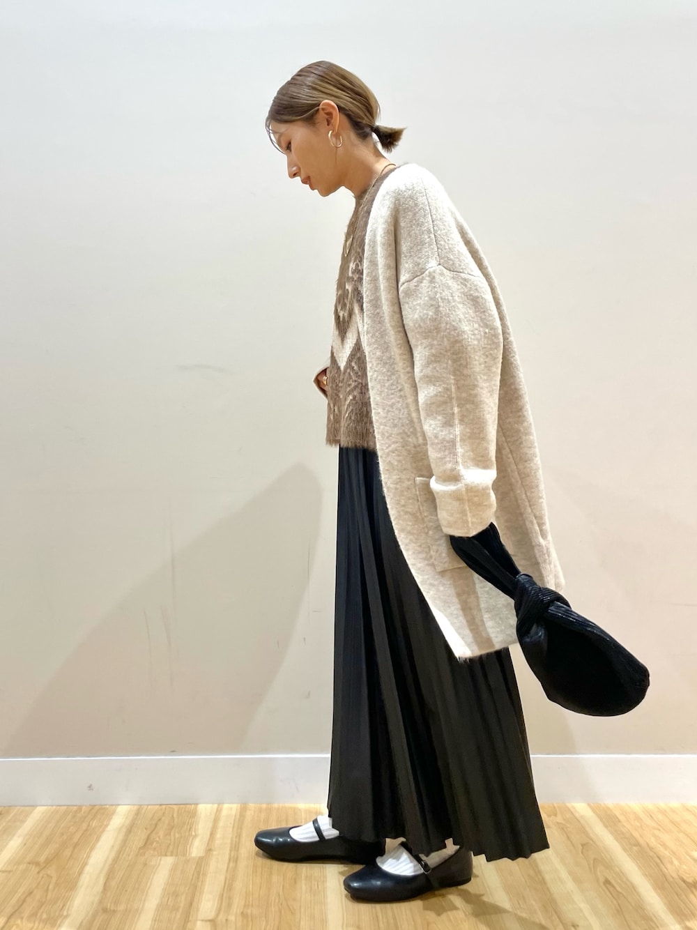 高級感のあるフェイクレザーを使用したプリーツスカート。ウエスト部分にゴムを施したストレスフリーな着心地に加え、広がり過ぎずにシックに着こなせるすっきりしたシルエットが魅力的。スニーカーやスウェットを合わせたカジュアルな着こなしから、ウール生地やロングシルエットのコートを羽織ったキレイめなスタイルまで幅広く活躍。秋冬だけでなく、春先にはエアリーなブラウスやシースルーアイテムと合わせて、素材のコントラストを効かせたコーディネートもお楽しみいただけますよ◎