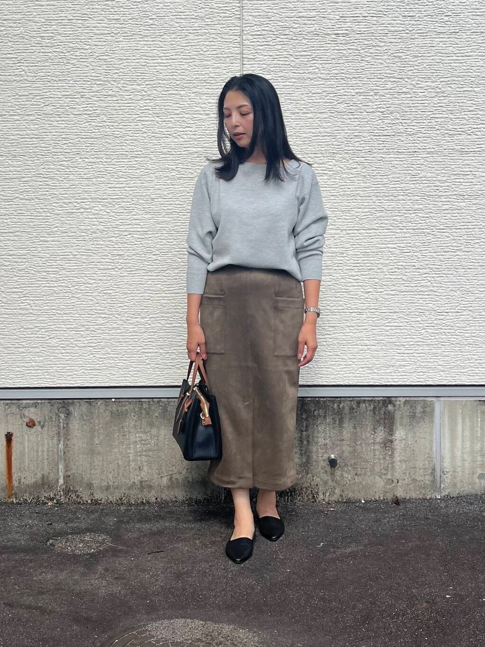 滑らかな質感と柔らかなトーンが上品な印象のフェイクスエードスカートが今シーズンも登場。オープンポケットデザインが腰回りをカバー。フロントスリットで歩きやすく、ストレートのタイトなシルエットは身体のラインをすっきりと見せてくれます。ゆるっとしたビッグシルエットのニットやフ―ディパーカーなどでカジュアルな装いや、ブラウスやジャケットと合わせてオフィススタイルなどシーンに合わせて着回せるのも魅力です♪