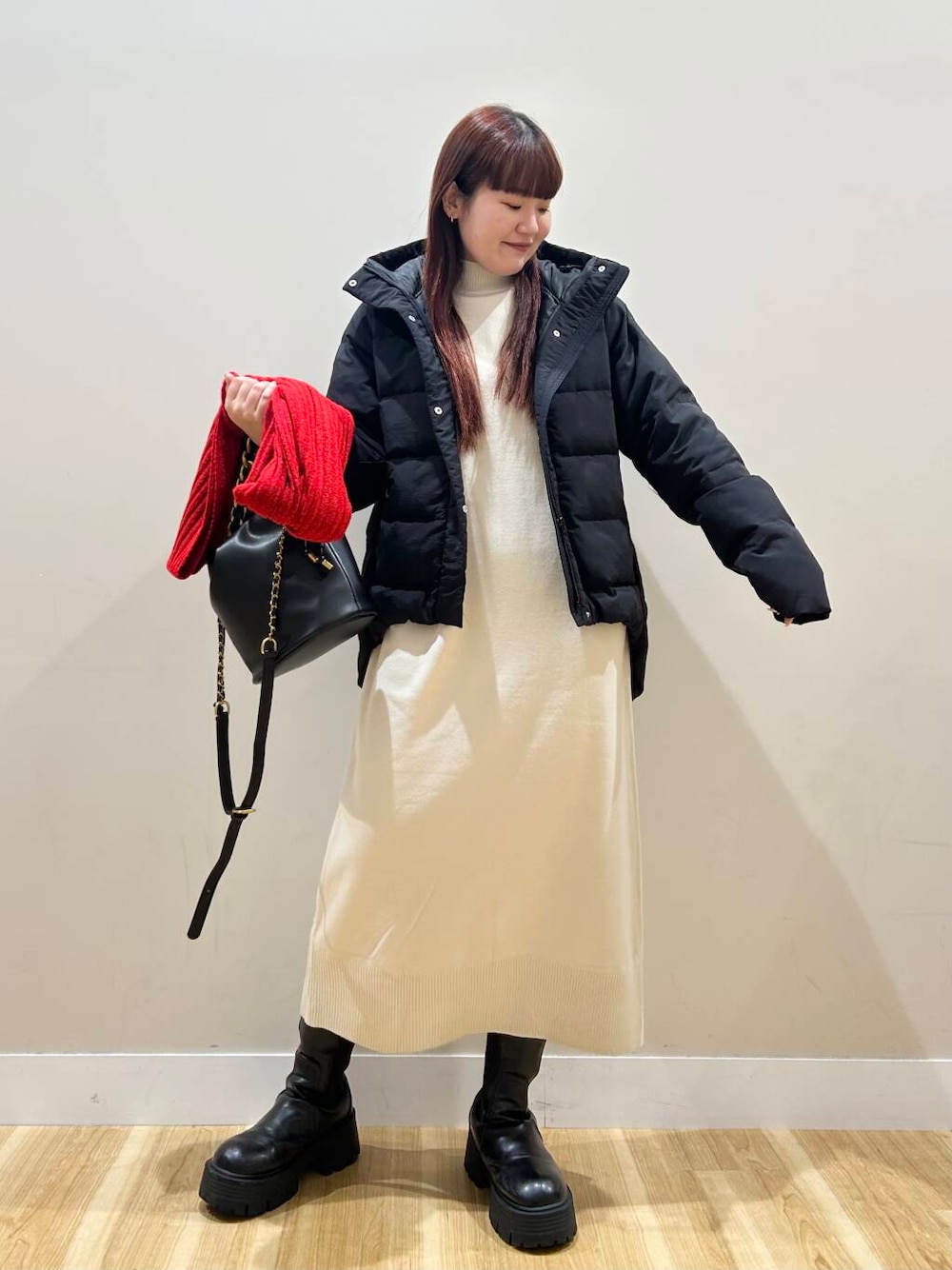 ハイネックニットワンピース