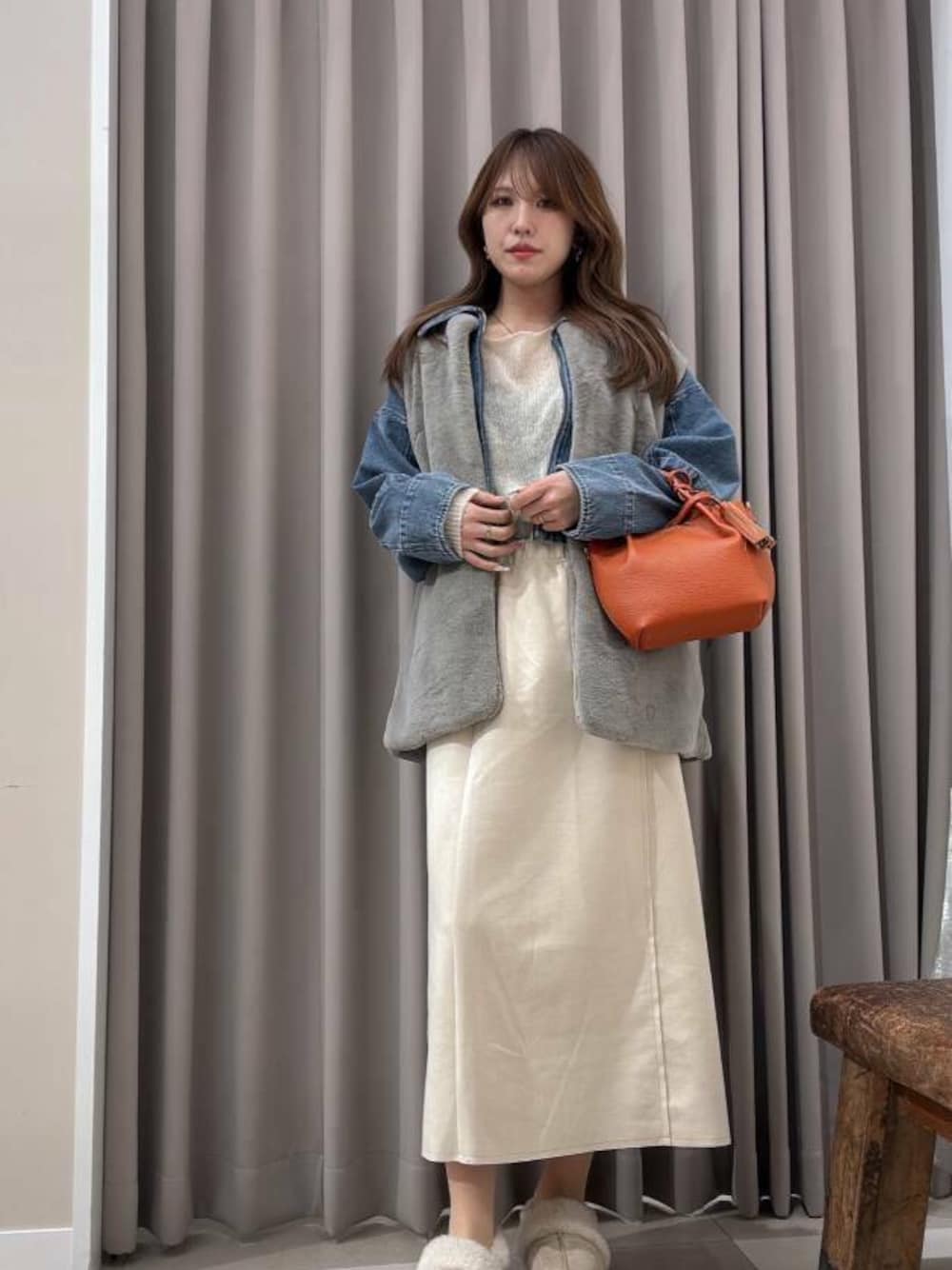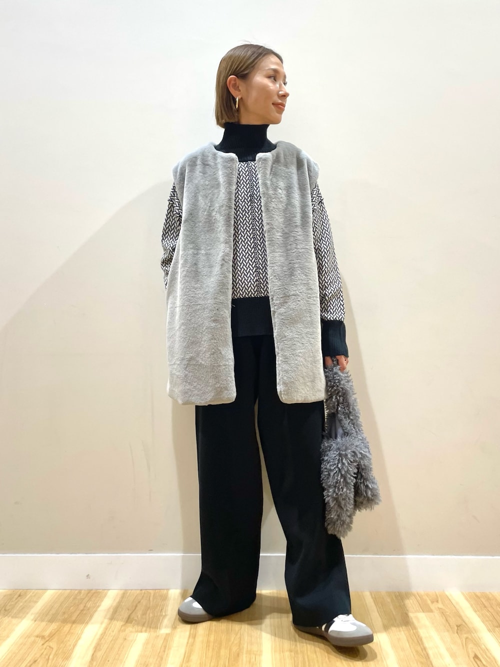 まるでリアルファーのような密度のある柔らかいフェイクファージレが今シーズンも到着。袖周りにゆとりを持たせているので、厚手のニットやスウェットだけでなく、軽めのアウターの上からでもご着用いただけるトレンド感が引き立つレイヤードアイテムです。ヒップ周りまですっぽり隠れる丈なので防寒対策にもオススメですよ。