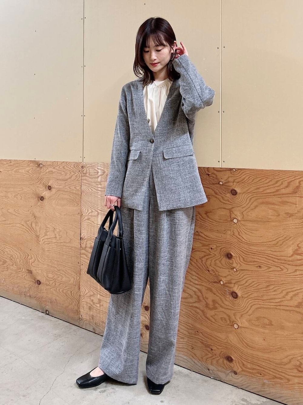 ストンとした落ち感のある美シルエットがポイントのワイドパンツ。デイリーだけでなく、入卒園式などのセレモニーなどにも取り入れやすいフォーマルさも兼ね備えた1着。まるでツイード生地で仕立てたような特徴的なルックスがより大人ライクな着こなしを叶えてくれますよ。後ろ身頃のウエストにゴムを施しているので、見た目以上に楽な着心地も魅力です。