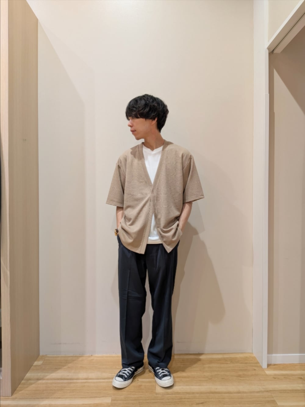 カーディガンは適度なゆとりとドライタッチな肌触りが特徴で、軽快に羽織れるデザイン。
