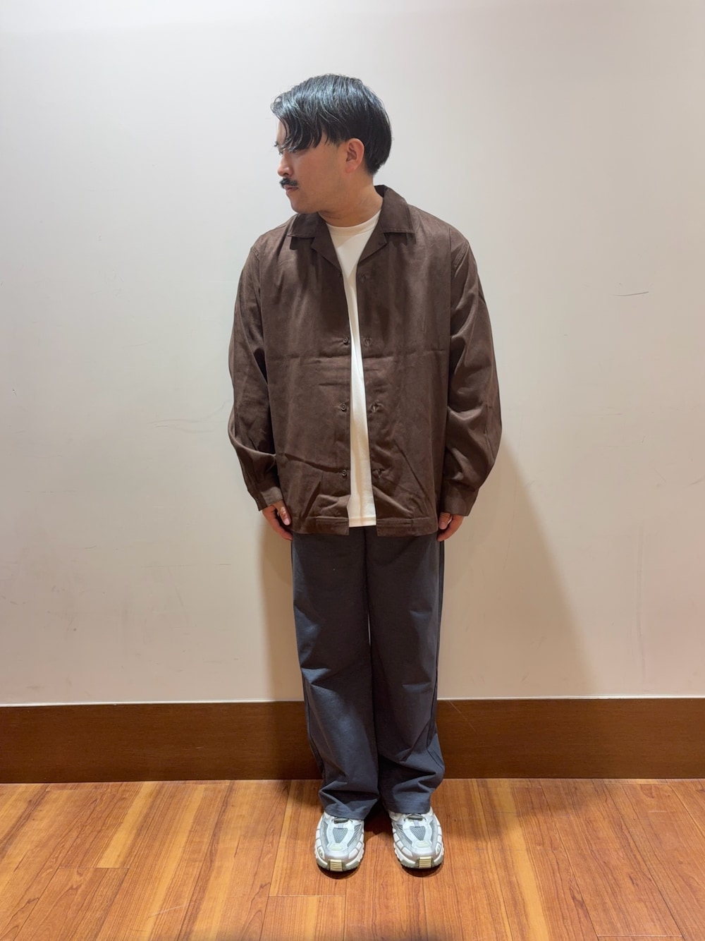 最近注目度が高まっているレザーシャツは、フェイクレザーならではの軽やかさで、羽織るだけでも着心地が快適です。キレイめモードな雰囲気を楽しみたい方にはフェイクレザータイプがおすすめ。首元がすっきり開いたオープンカラーで、コーディネートに自然な抜け感と秋らしい温かみをプラスしてくれる一枚です。