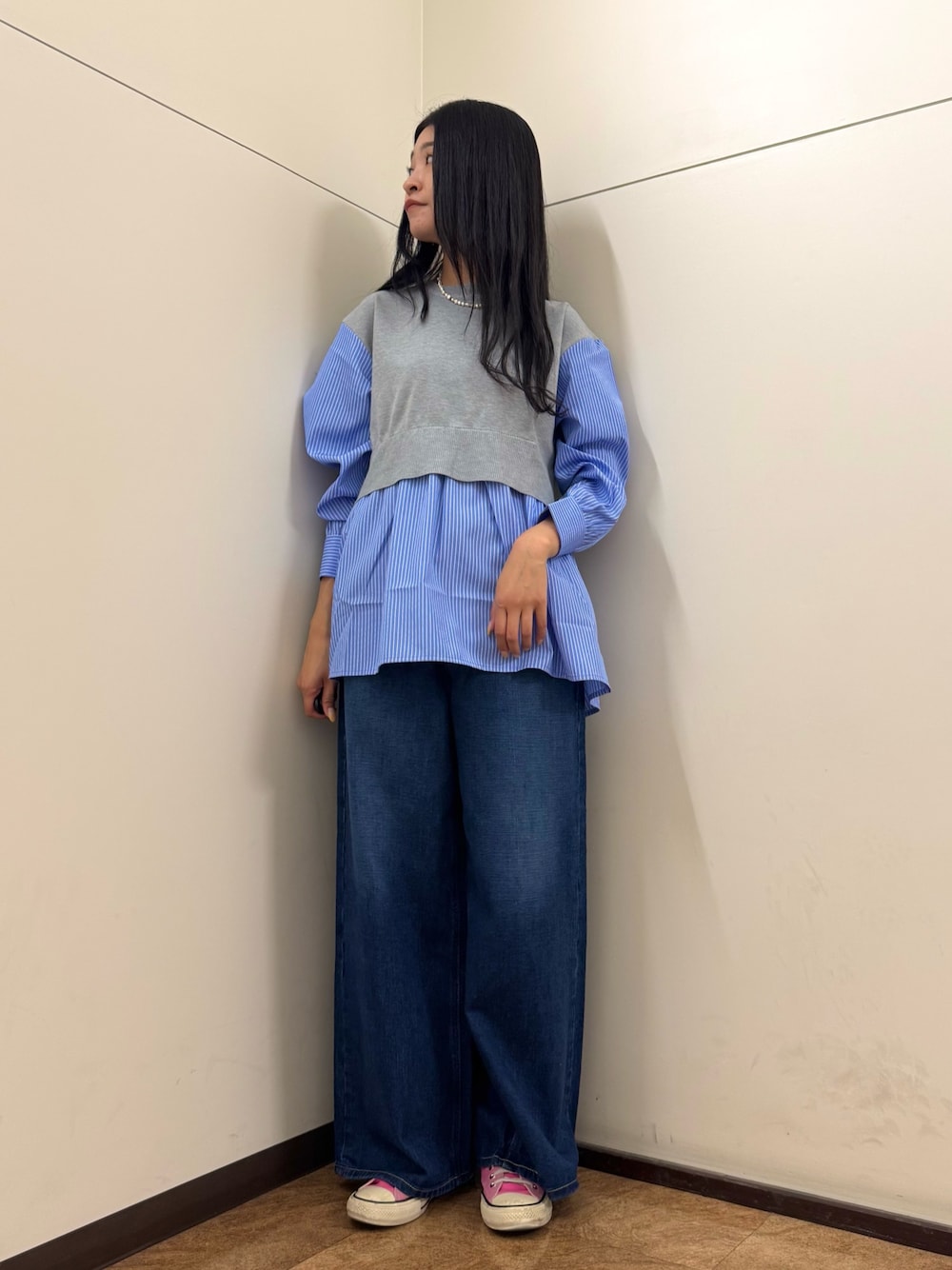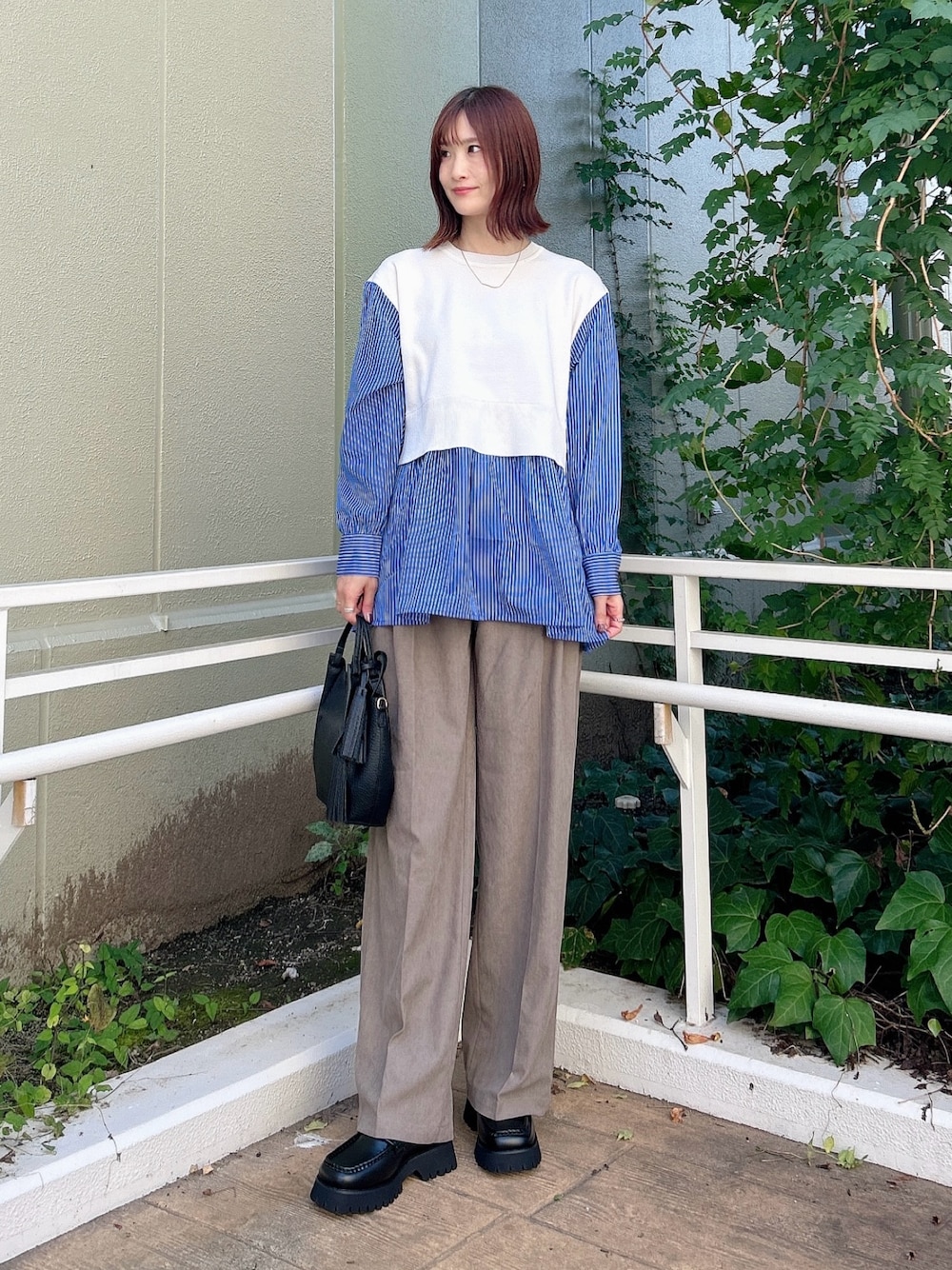 一枚で旬のレイヤードスタイルが完成。ふんわり柔らかなニットと爽やかなストライプシャツの異素材ミックスが、着こなしに奥行きと華やかさをプラスします。シンプルながらもデザイン性が高く、デニムやパンツ、スカートなどどんなボトムスとも相性抜群。忙しい朝でもこれ一枚でサマになる、快適さとおしゃれを両立した大人にぴったりのアイテムです。