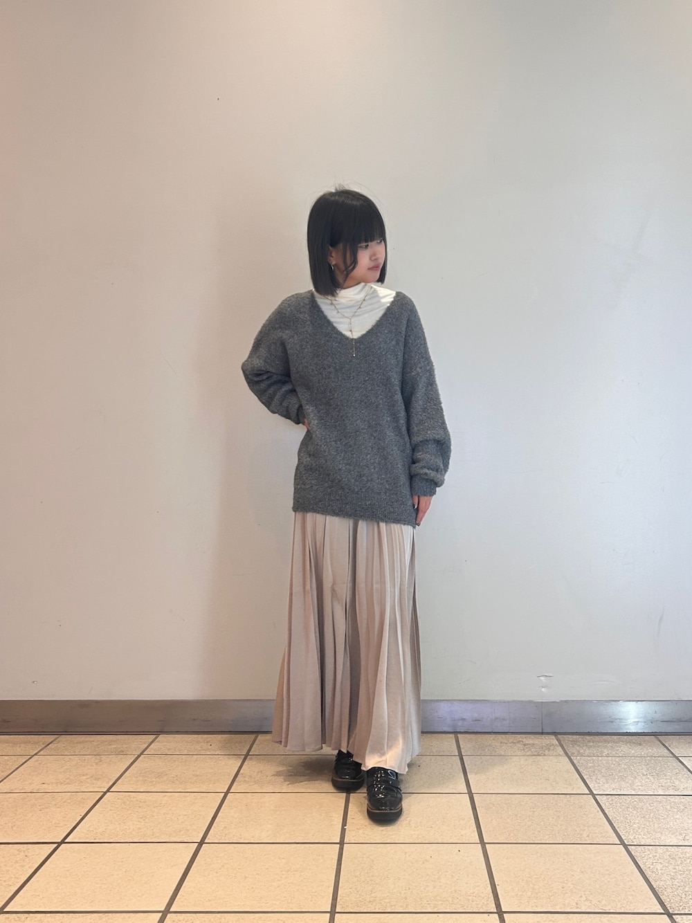 動くたびに揺れるプリーツと、サテンならではの上品な光沢感が魅力の一枚。重めなトップスなどに軽やかさをプラスして、バランスの取れた着こなしに。シンプルなコーディネートもぐっと華やぐ、秋冬のスタイリングにおすすめのアイテムです。