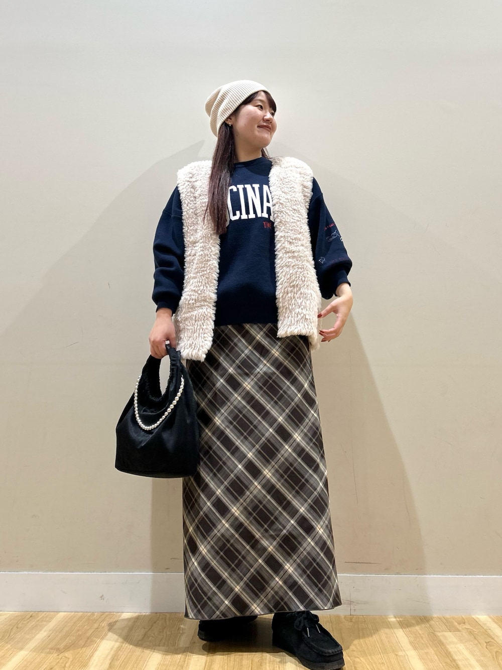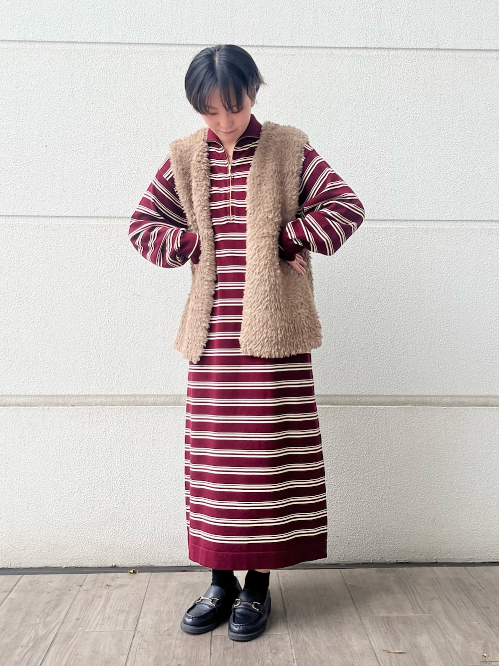 ふんわりとしたボリューム感が女性らしい抜け感を演出するフェイクファーベスト。 軽やかな素材感で、レイヤードスタイルに最適な一着です。 コンパクトなシルエットがどんなトップスともバランスよくマッチし、 季節の変わり目にさっと羽織るだけでこなれた印象に仕上げます。 カジュアルにもきれいめにも使える万能アイテムで、幅広いシーンで活躍します。