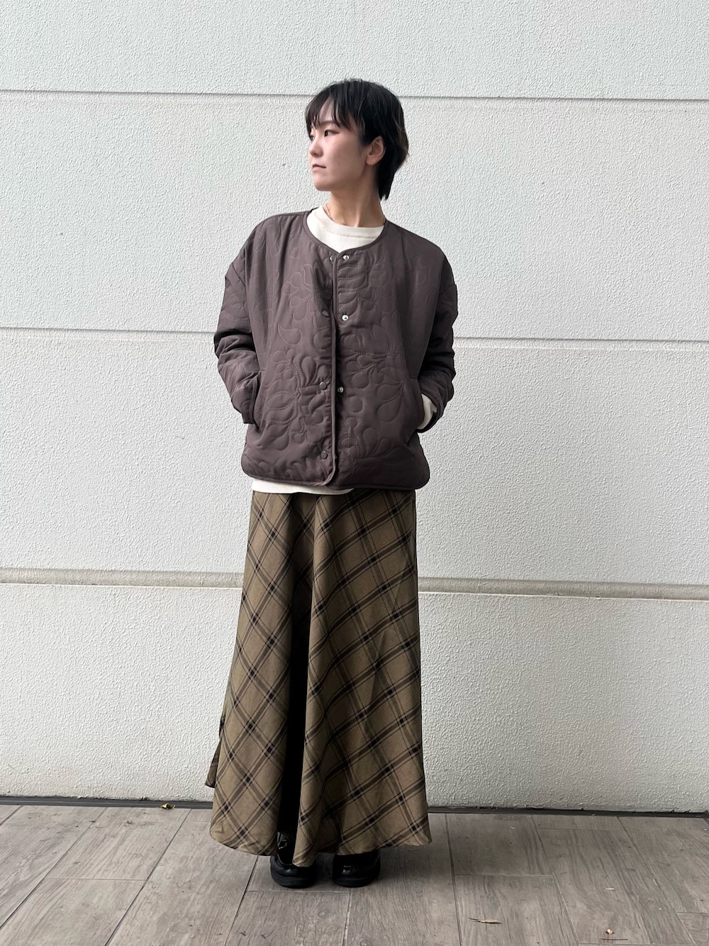 昨年人気を集めたノーカラーブルゾンが今年も登場。柔らかく軽量な中綿素材で、程よくゆったりしたオーバーサイズは重ね着も快適。刺繍がさりげなく個性を演出し、シンプルなデザインにアクセントをプラスします。腰回りをカバーする着丈と同色スナップボタンで統一感ある仕上がりに。ベーシックカラーでコーデしやすく、デイリーからカジュアルまで活躍する、季節の変わり目にぴったりな一枚です。