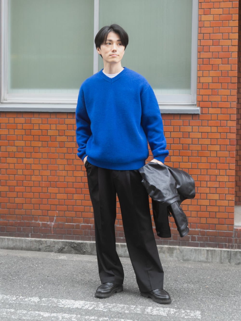 素材の良さで魅せる、洗練のVネックスタイル
