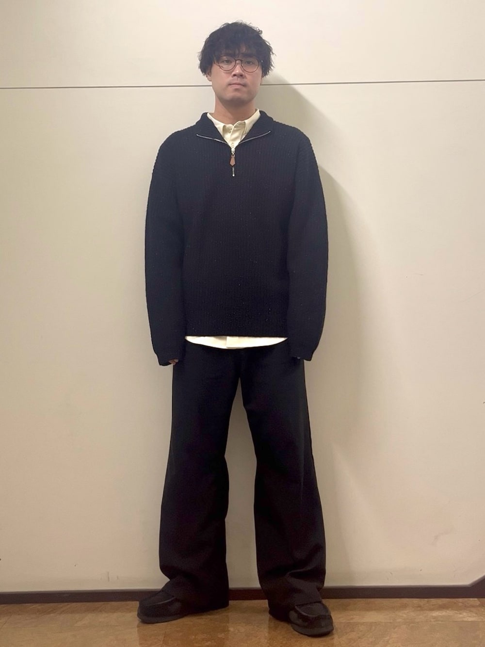 ウール混の柔らかな素材は、ふっくらとした肌触りで保温性がありながらチクチク感を抑えた快適な着心地。シルエットは身体のラインを拾いすぎない程よいゆとりで、1枚でもアウターの中でもバランスよく収まる設計です。
