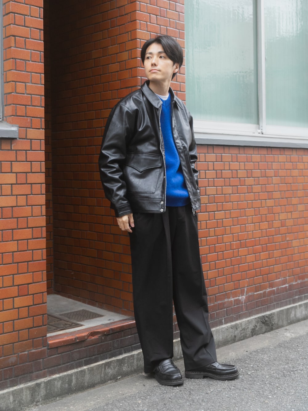 フライトジャケットの無骨な表情を、現代的に着やすく再構築したフェイクレザージャケット。