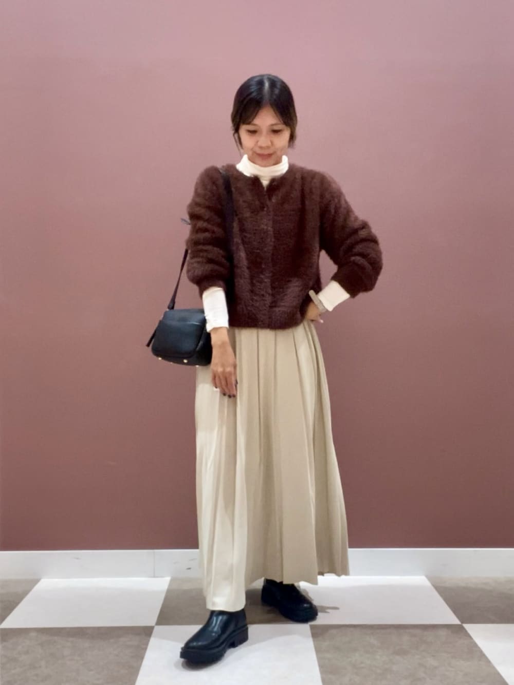 やわらかく伸縮性のあるリブ素材で、首元はすっきり見せつつ快適な着心地。シャツやブラウスのインナーとしてはもちろん、1枚でさらりと着ても女性らしいシルエットを演出するマルチユースアイテムです。秋から冬まで、着回し力抜群で手放せない、この季節のマストバイです。