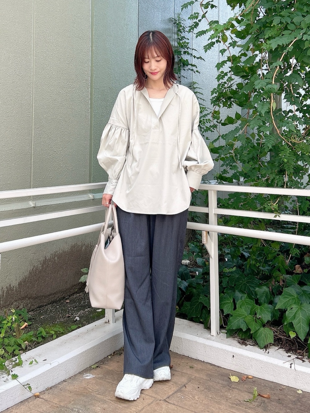 やわらかな抜け感と上品さを両立する、スキッパーボリュームブラウス。
