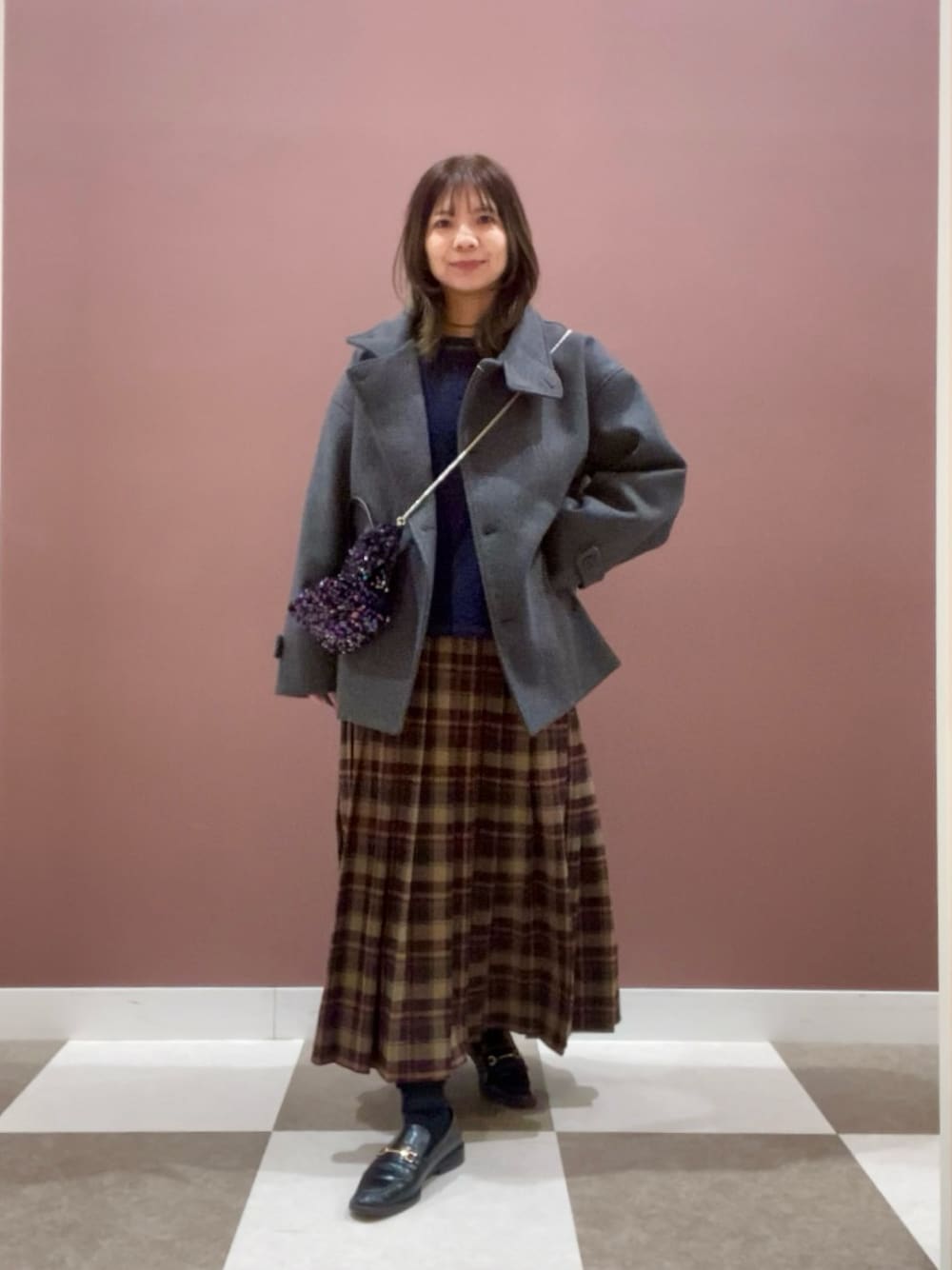 ゆったりとしたオーバーサイズシルエットとドロップショルダーで、厚手のトップスの上からもすっきり羽織れるジャケットです。首元はスタンドカラーで寒さを防ぎつつ、小顔効果も期待できます。ミドル丈でどんなボトムとも合わせやすく、冬のデイリーコーデに重宝する一枚です。