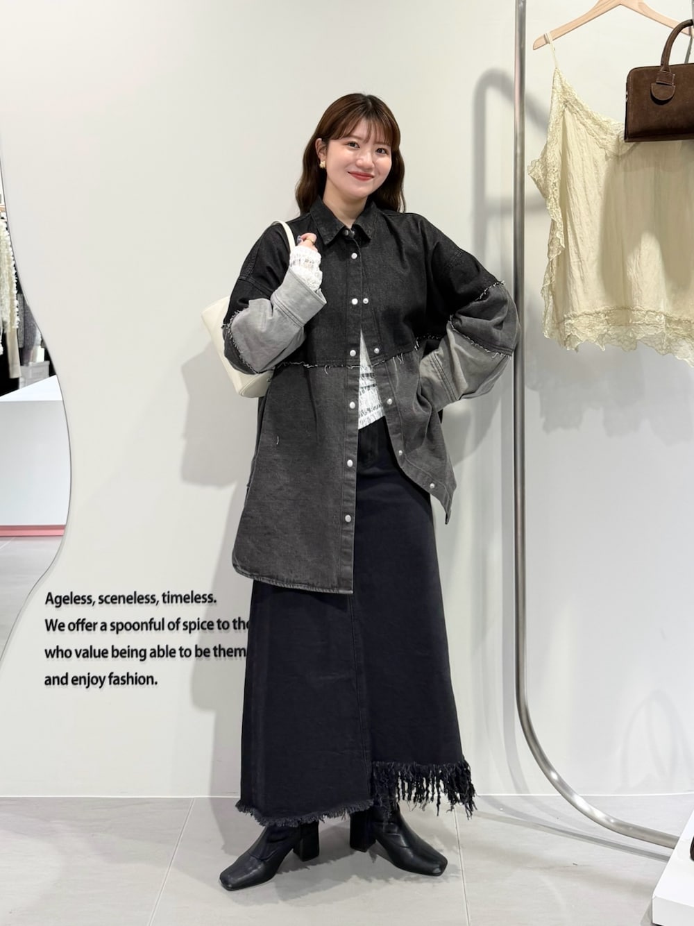 • アシンメトリーなデザインや裾の長さの異なるアイテムは、最長の長さを「総丈」としております。