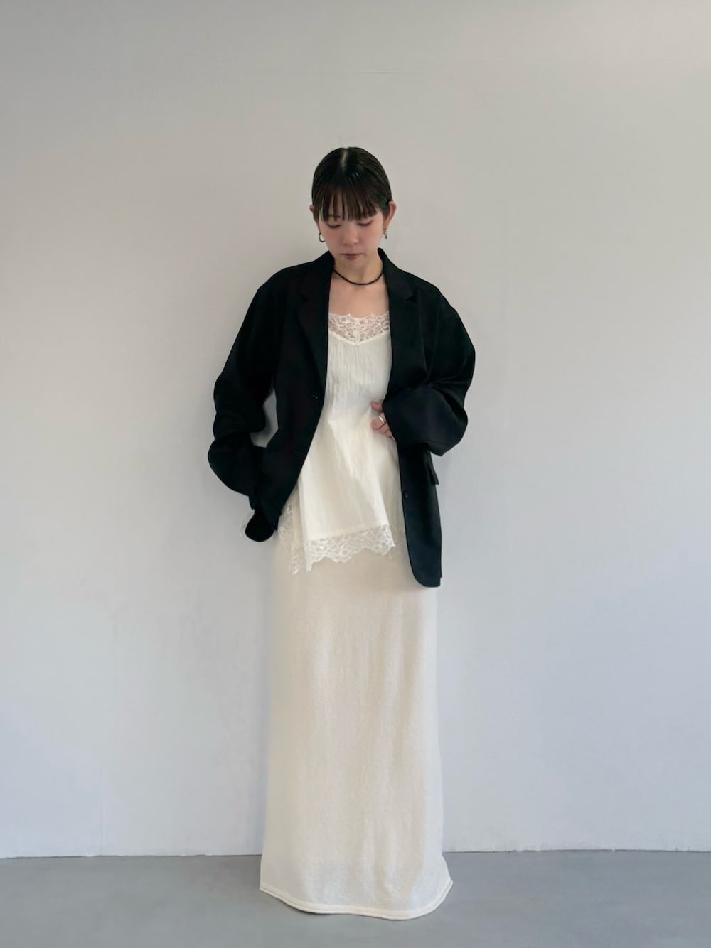 サテンキャミソールにレーステープを施したトレンドアイテムが登場。肩紐はアジャスターが付いているので、チュニック丈にすることも可能です。身体のラインを拾い過ぎないサイジングや、サイドスリットもポイント。メイン使いはもちろん、ゆるっとしたスウェットやニットの中に着ていただいたリラクシーなスタイリングがおすすめです。