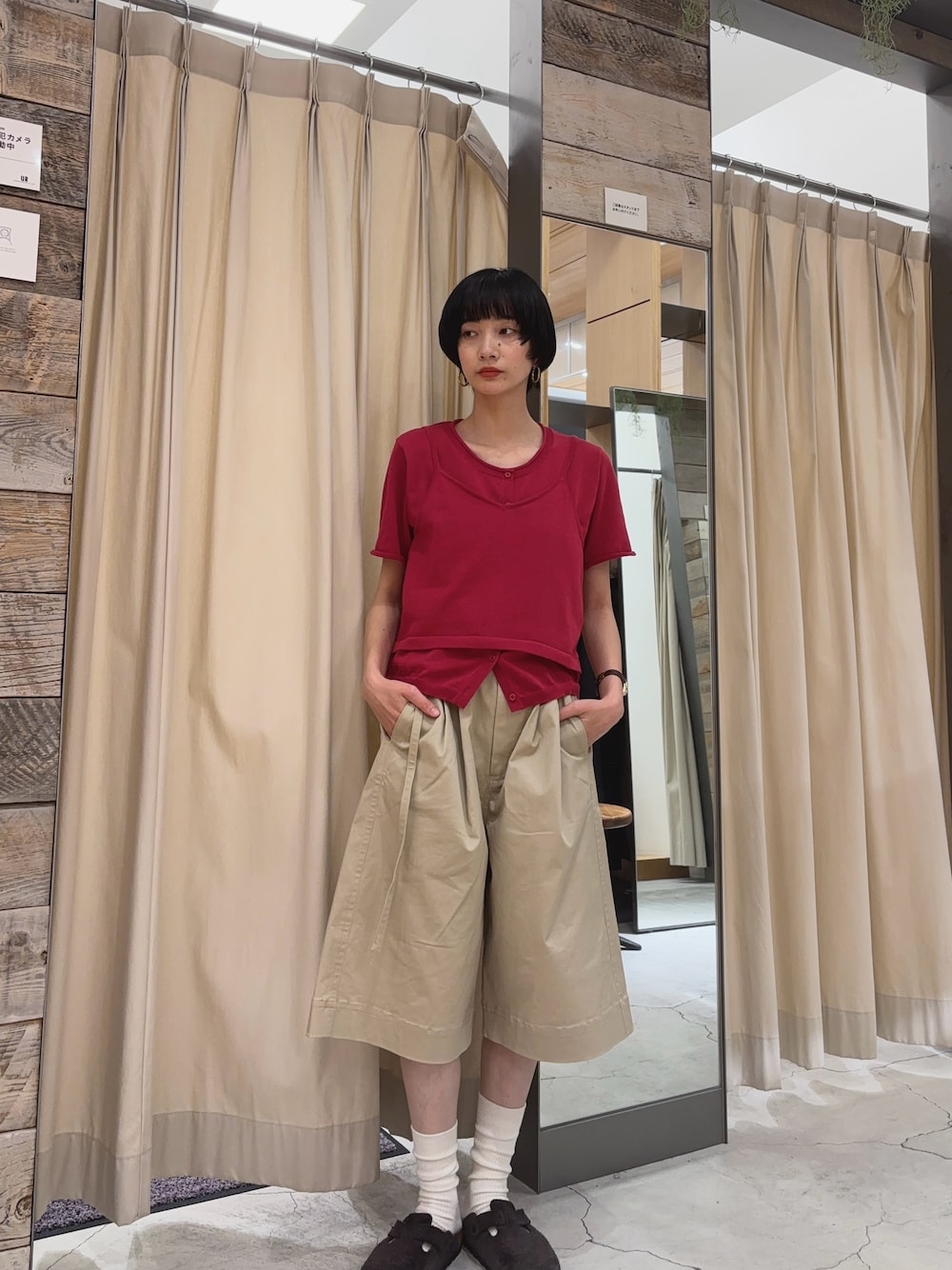 1番足がきれいに見える丈感にこだわったハーフパンツ。固めの綿素材を使用し、フォルムにこだわりました。細めのベルトがセットになっており、少年っぽさの中に華奢な印象を加えました。