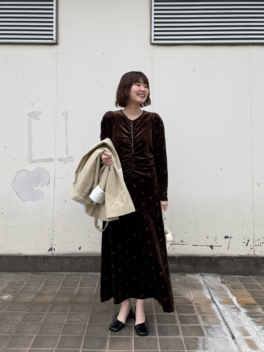 シャーリングを大胆に胸元に施したベロアワンピース。程よく光沢のあるベロア生地を使用しているので、高級感のある仕上がりになっています。身体のラインを拾い過ぎないサイジングながらも、ウエストのシャーリングでしっかりとメリハリのある着こなしが期待できます。無地のBLACK、さりげない刺繍がポイントのBROWN刺繍とCCL刺繍をご用意しました。