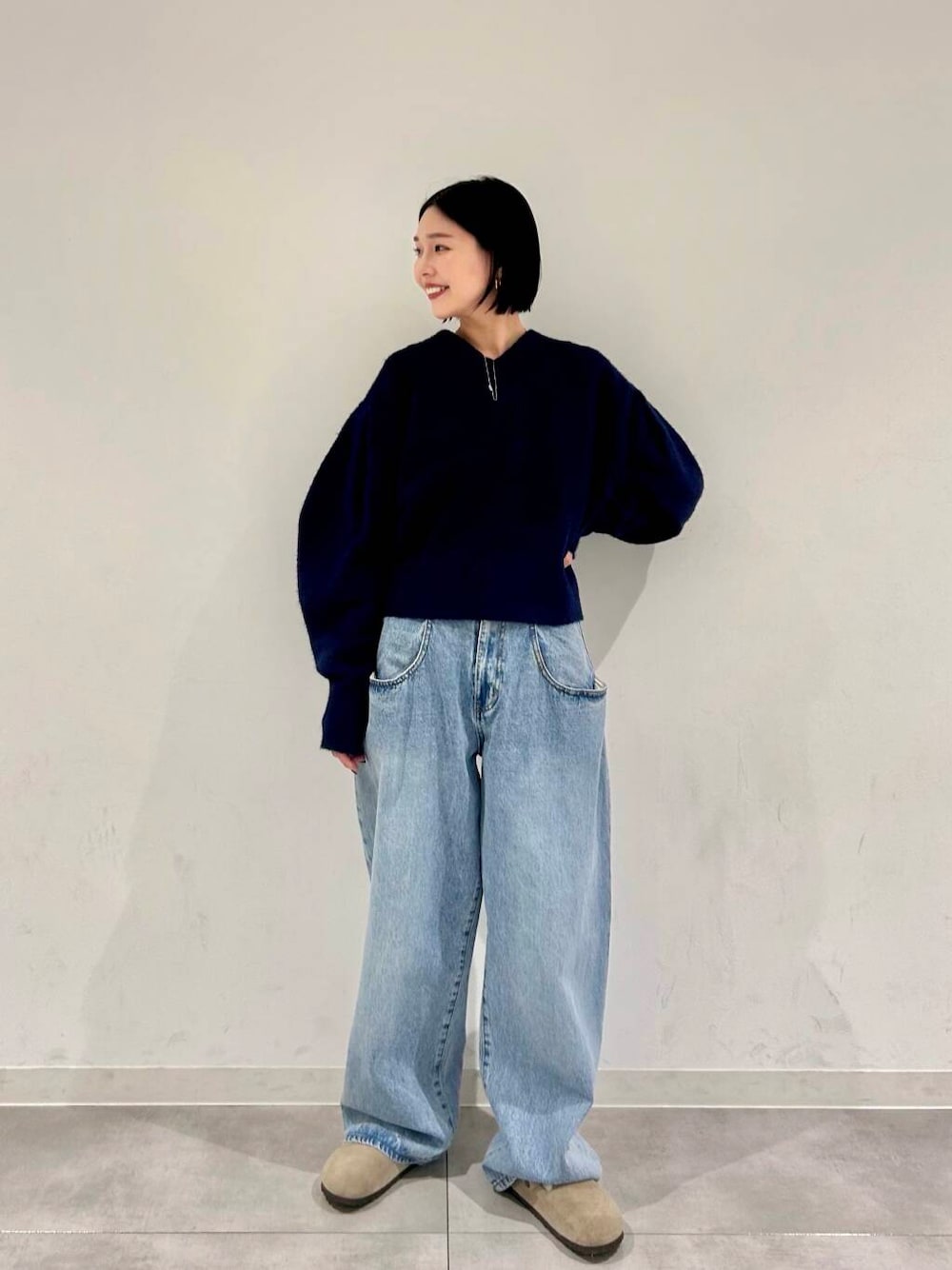 定番のデニム、ワイドパンツからチェックナロースカートまで幅広く相性抜群。タイツ×ミニスカート×ロングブーツの合わせもおすすめです。