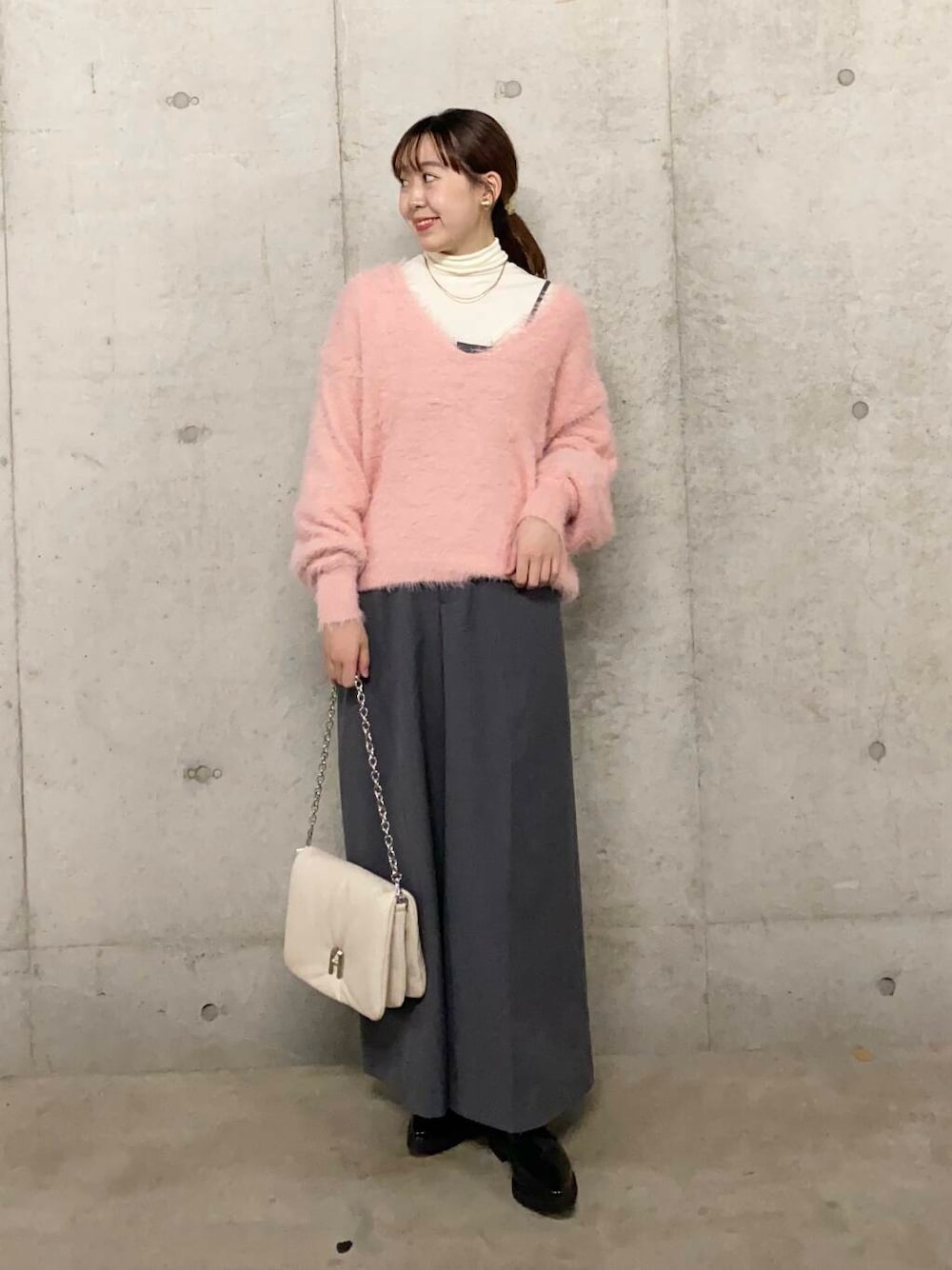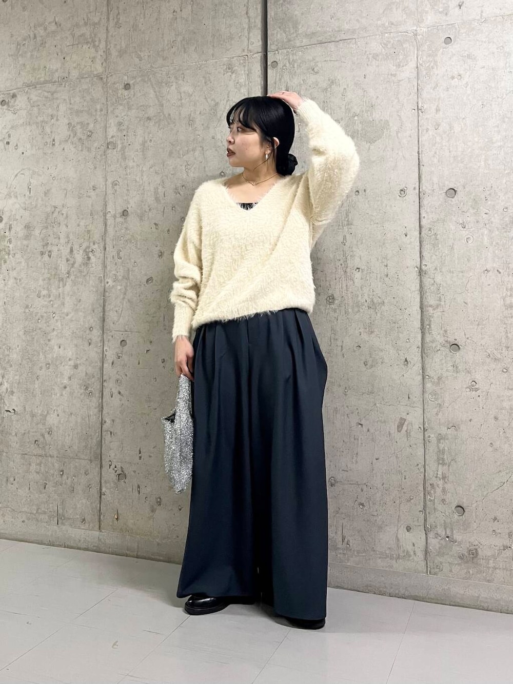 肌触りが良く、ふわふわの毛足のシャギー糸を使用した主役級ニット。Vネック仕様にしたので、着膨れせず着ていただけます。程良く落ち感があり、袖はくしゅっと溜まるように設定されています。表情の異なる3色をご用意しました。