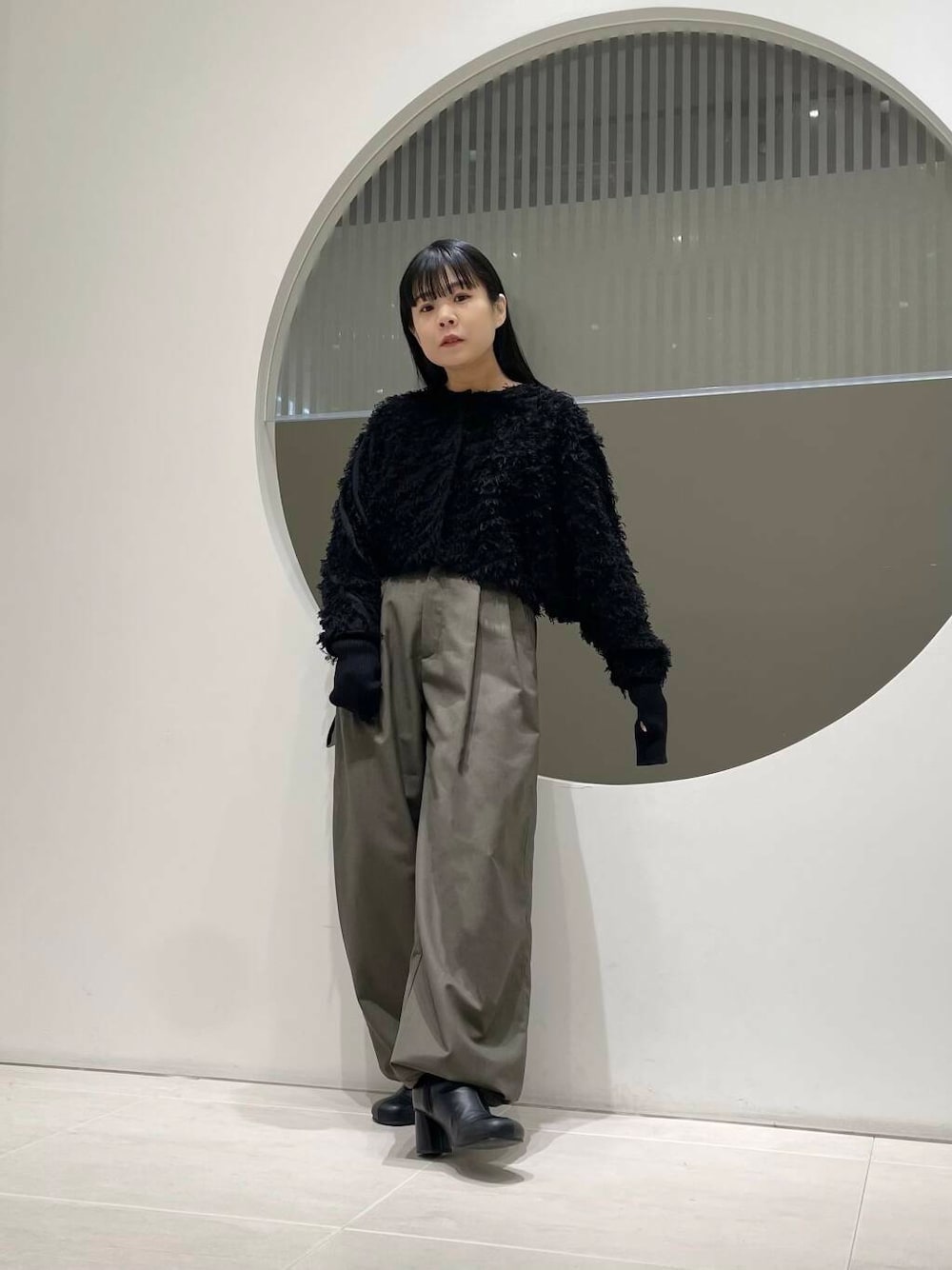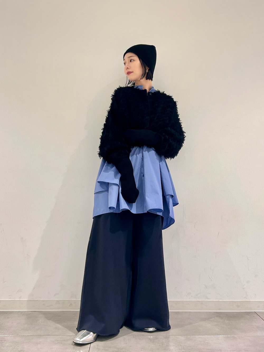 昨年ご好評いただいていたフリンジカーディガンが今年も登場。ジャガード編みの糸をカットし、フリンジのように仕上げました。また、羽織りのみならずトップスとしても使用いただける前後2WAY仕様が嬉しい1着。どんなボトムにも馴染みやすい程良い着丈や、サムホール付きもこだわりのポイント。定番のBLACK、優しい色合いのIVORY&PISTACHIOをご用意しました。