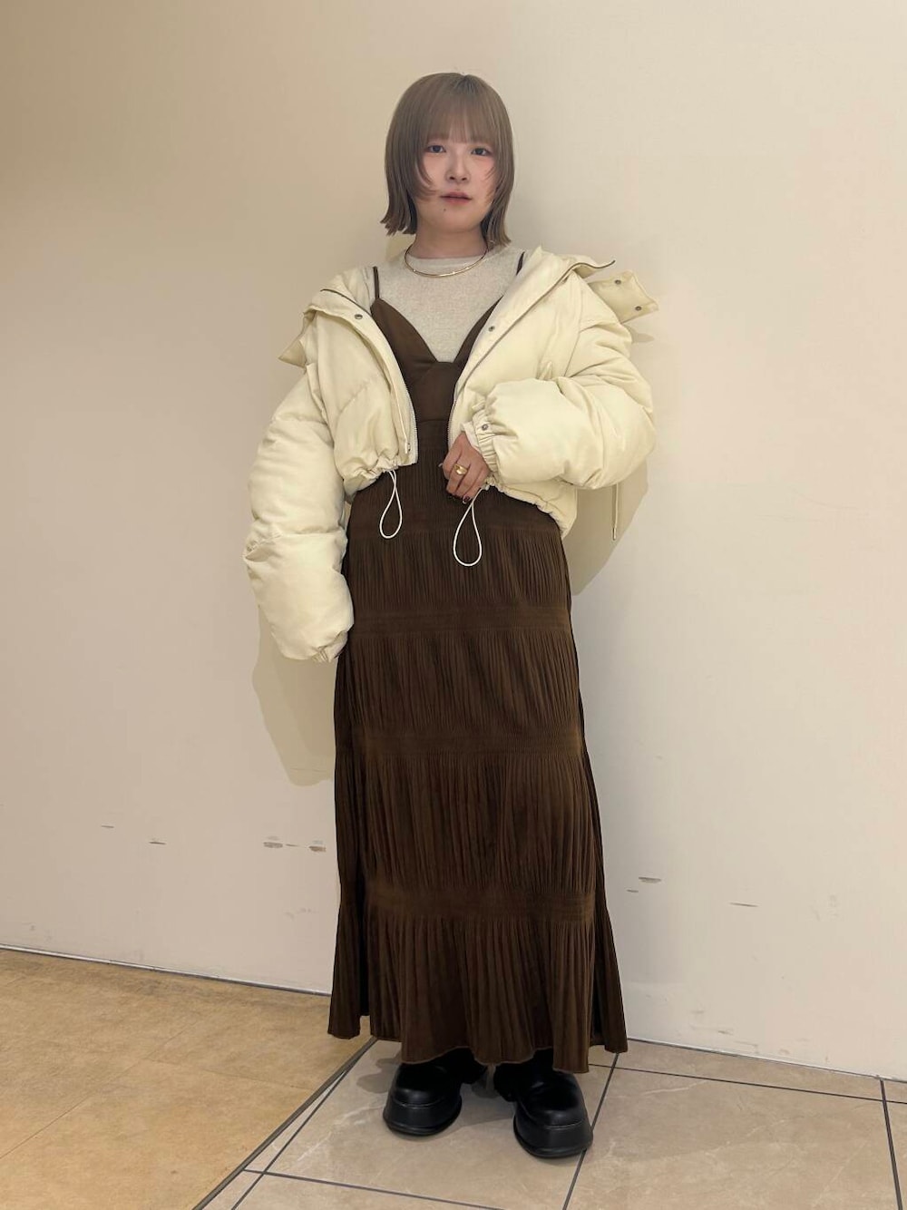 ぴったりとしたトップスはボリュームのあるパンツやデザイン性のあるスカートと相性抜群。ジャンパースカートやワンピースのインナーにもおすすめです。シンプルなのでアクセサリーや小物をプラスしても◎