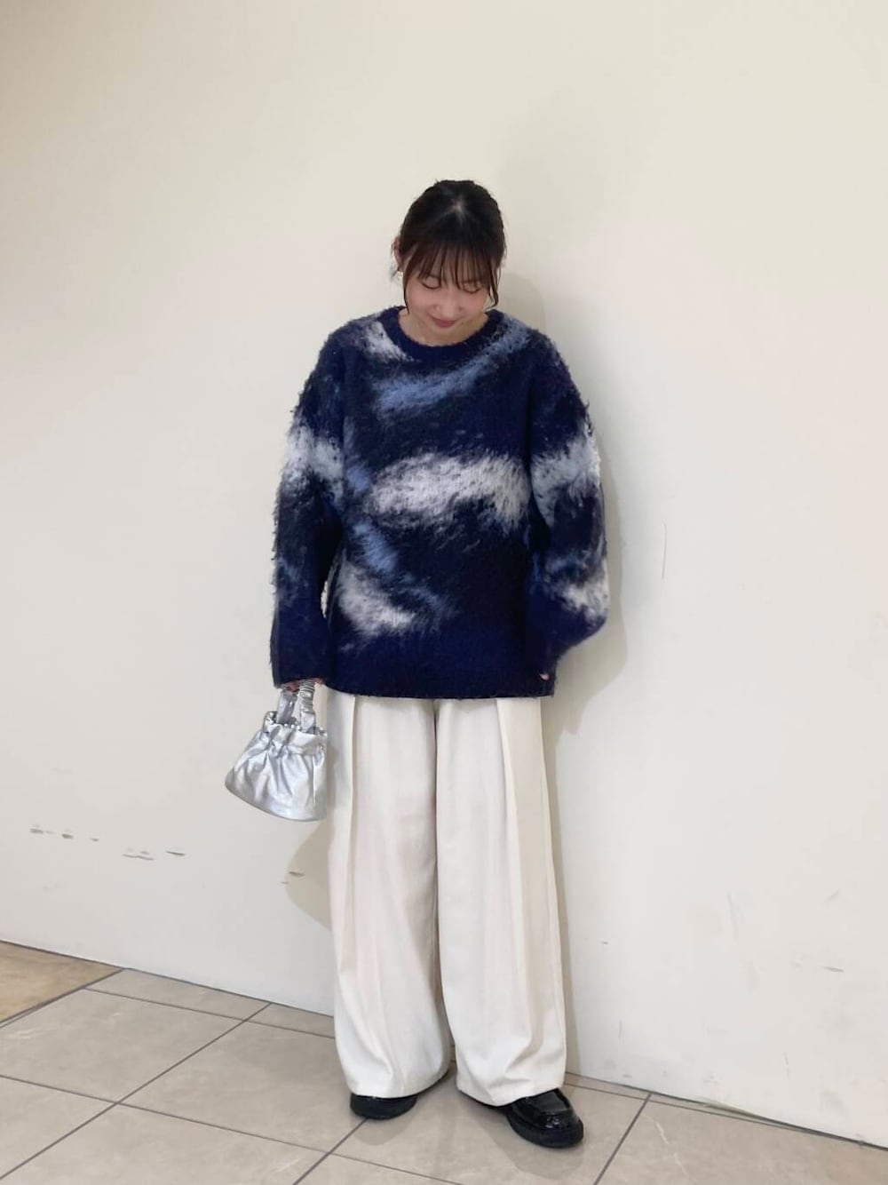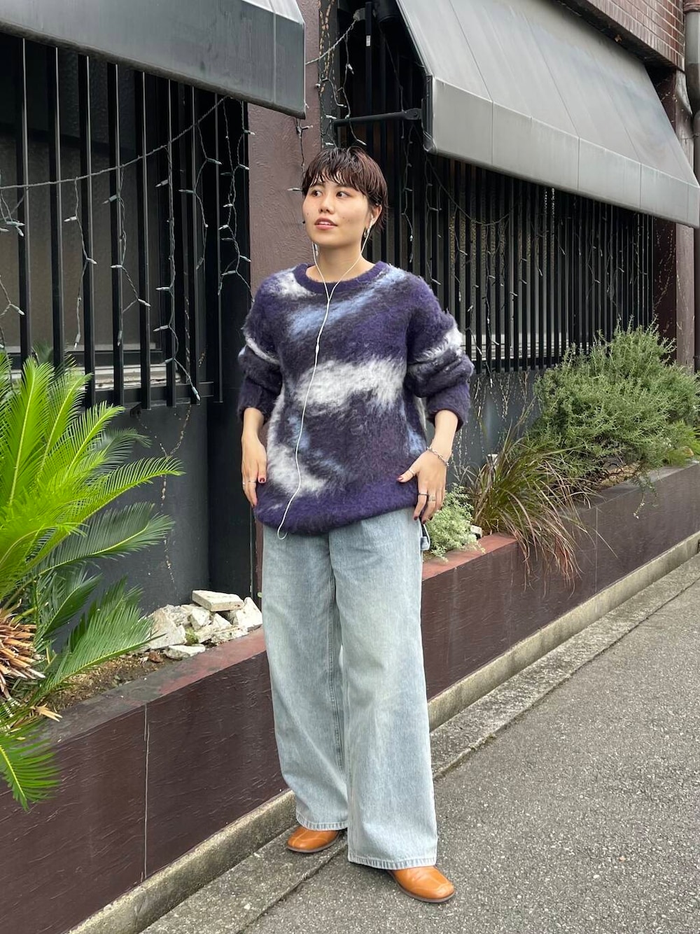 ギャラクシー模様がキャッチーなニット。起毛感のあるふわふわとした素材が魅力で、柔らかな着心地且つ腰回りをカバーするメンズライクなサイジングもポイント。合わせるアイテム次第でカジュアル~女性らしいスタイルまで幅広く楽しめます。表情の異なるからバリエーションにも注目です◎