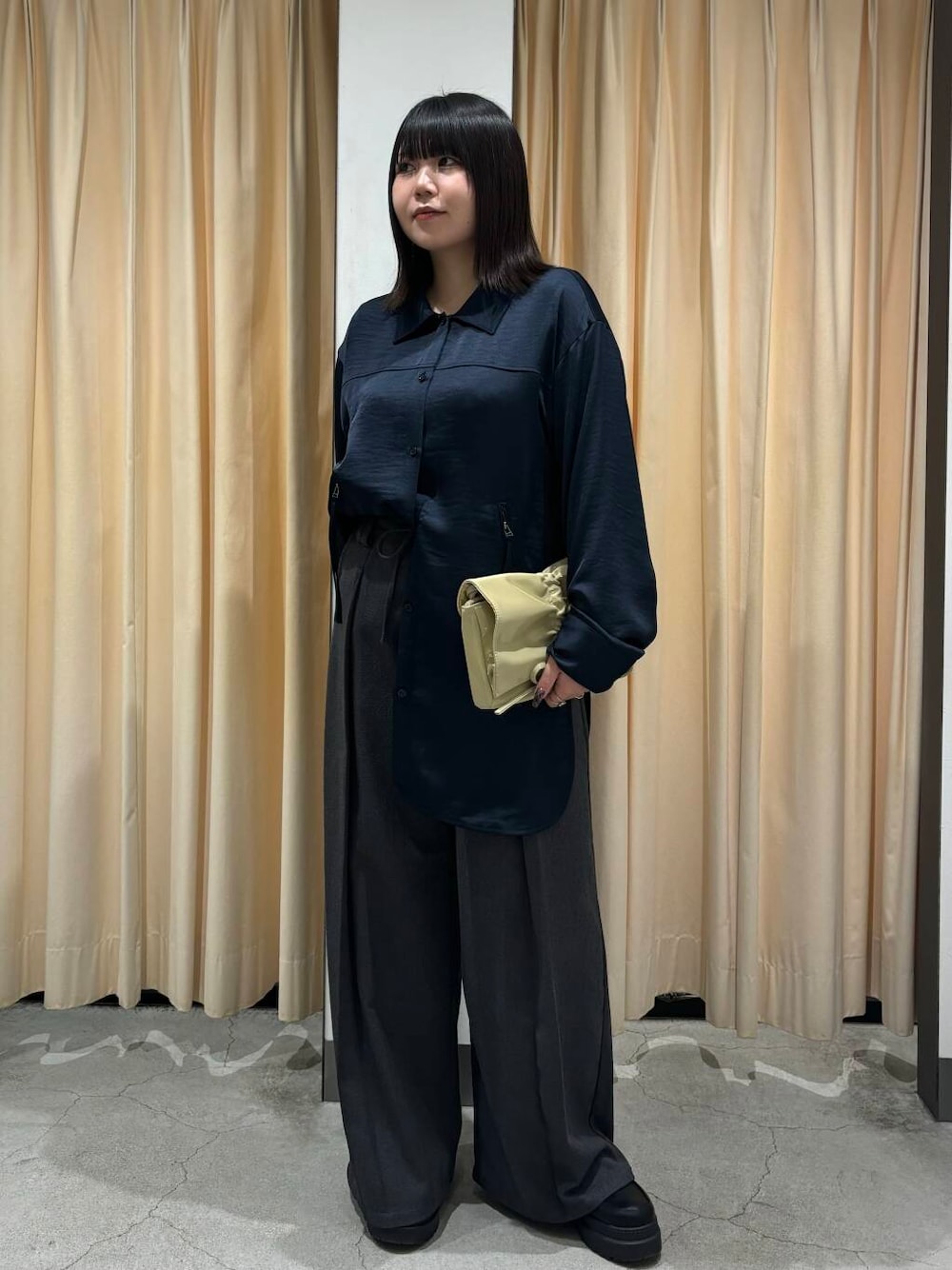 【程良い光沢&落ち感がポイントの華奢見えサテンシャツ】