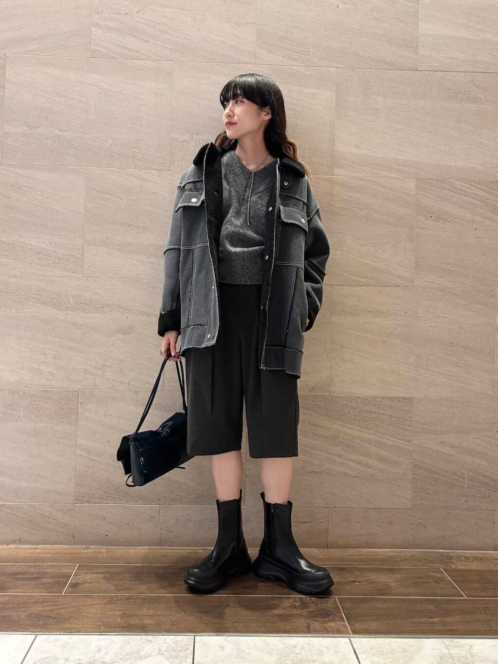 ロング丈やオーバーシルエットのアイテムと相性が良く、抜け感を演出してくれます。また、ロングブーツやソックス×スニーカーコーデもおすすめ。