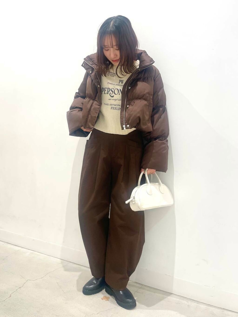 ボリュームのあるパンツはマルチビスチェSETカーディガン(KB47-22F240)と合わせるのがイチオシ!もちろん、トップスをタックインしたりコンパクトなアイテムを着るとよりすっきりとした着こなしができます。