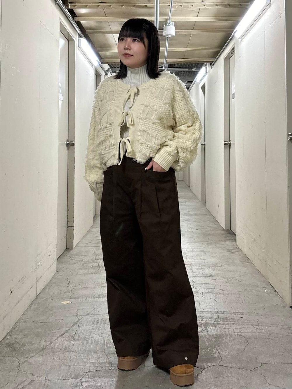 ボリュームのあるパンツはマルチビスチェSETカーディガン(KB47-22F240)と合わせるのがイチオシ!もちろん、トップスをタックインしたりコンパクトなアイテムを着るとよりすっきりとした着こなしができます。