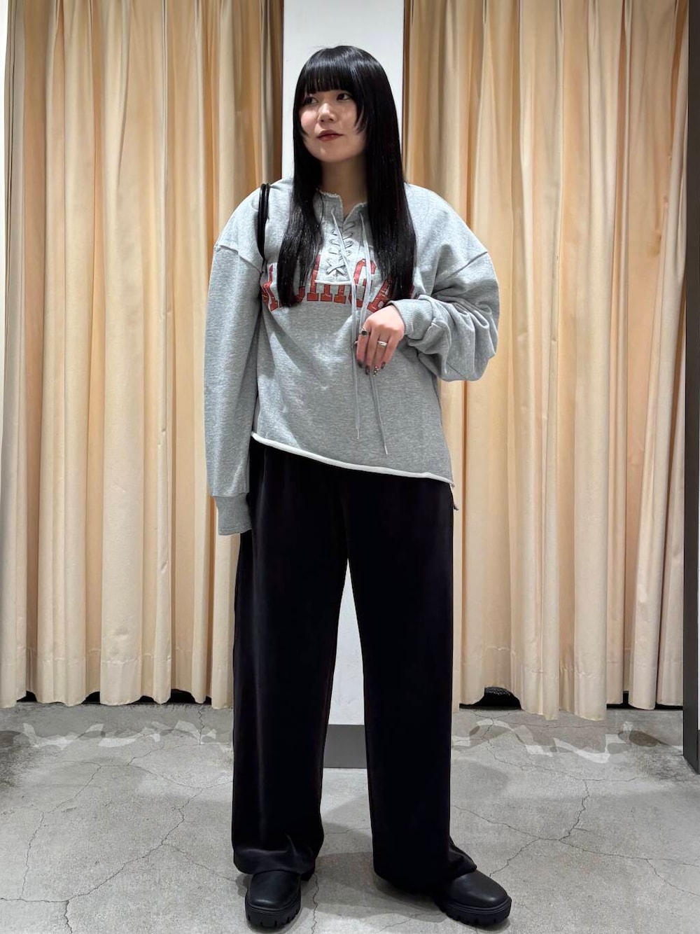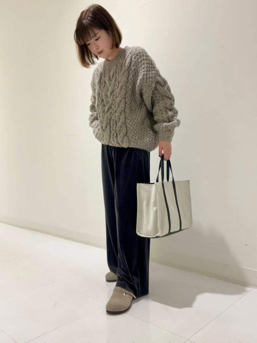 オーバーサイズのニットやカジュアルなスウェットを着ると抜け感のある着こなしが叶います。また、コンパクトなアイテムを合わせるとメリハリのあるスタイリングに。