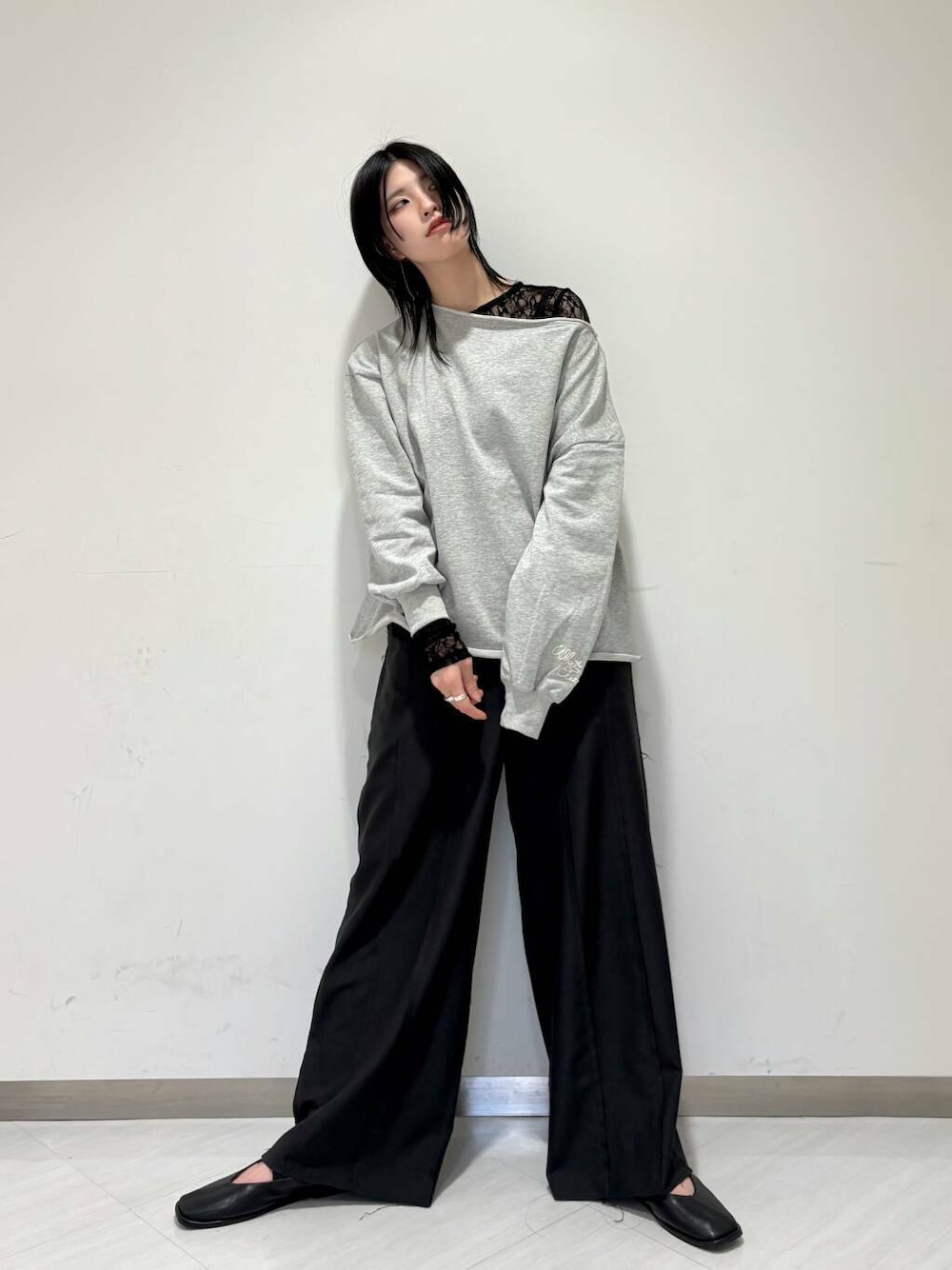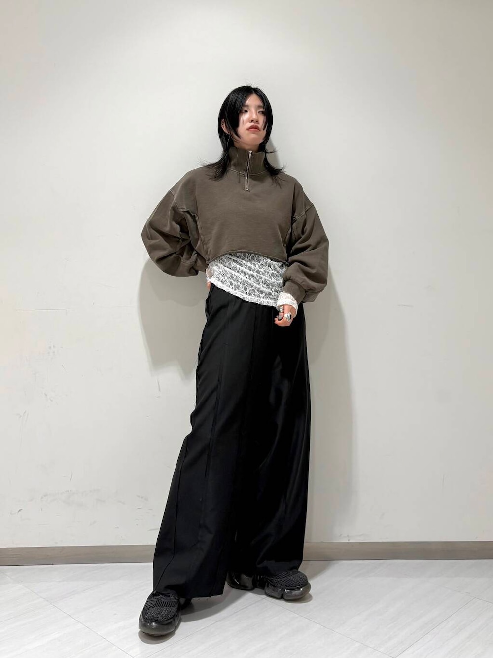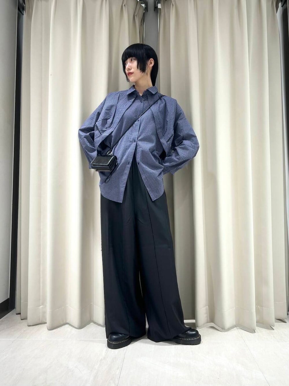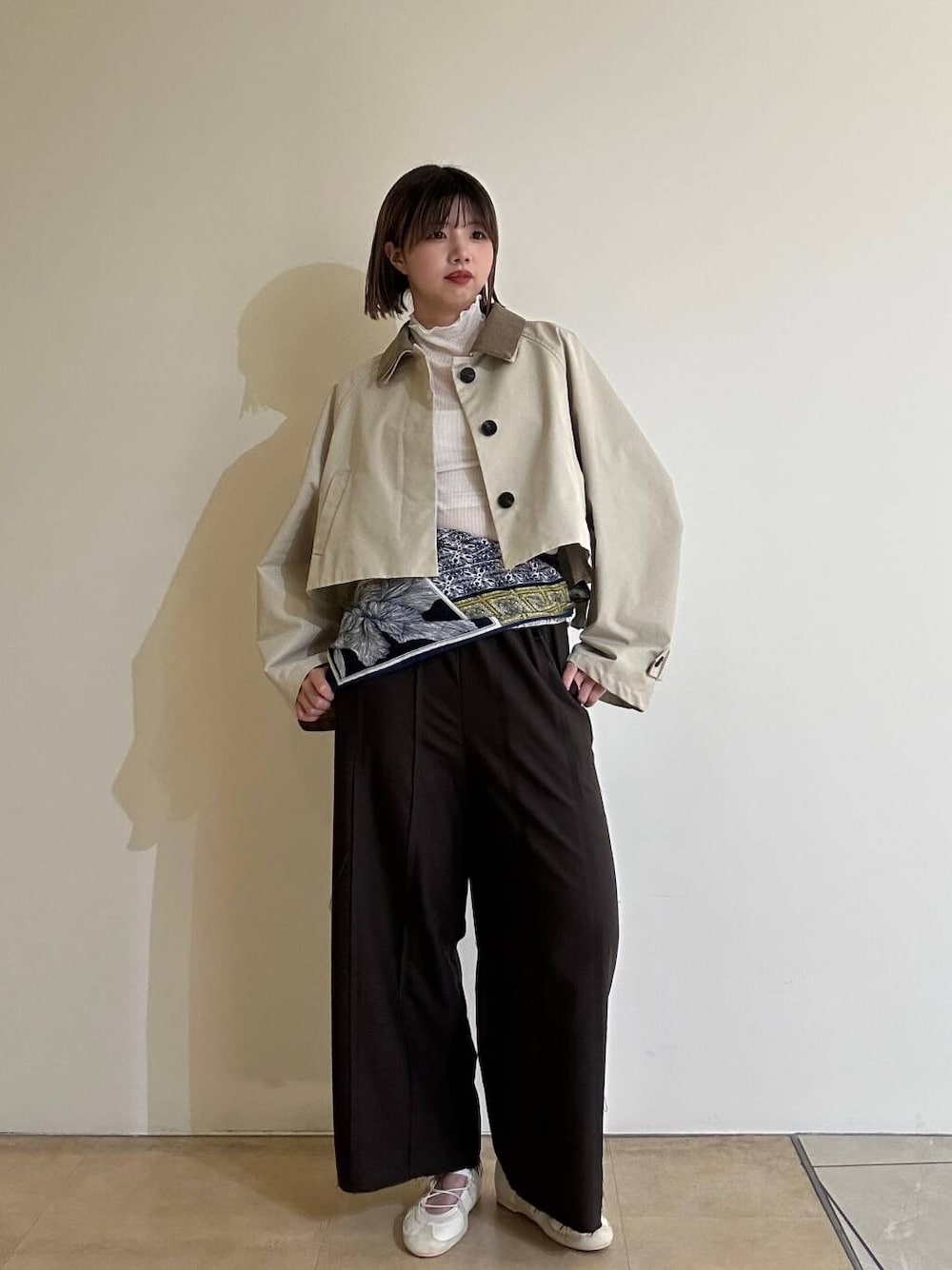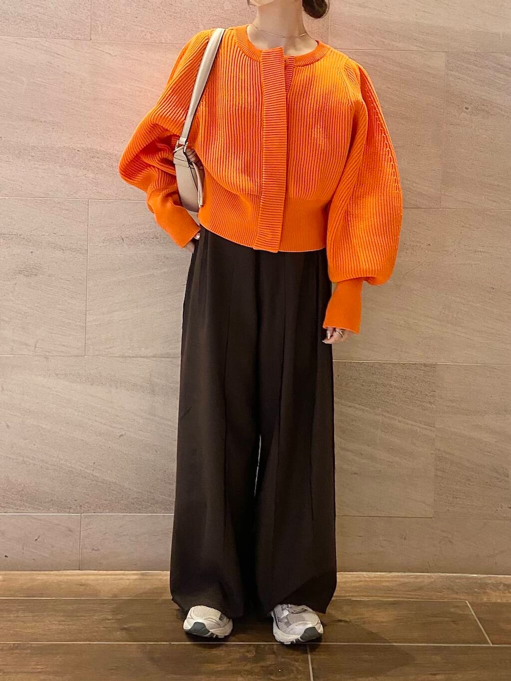 ボリュームのあるニットやシャツ、コンパクトトップスまで幅広いアイテムにマッチします。メンズっぽさのあるサイズ感は、ボリュームのあるシューズを合わせるのが◎