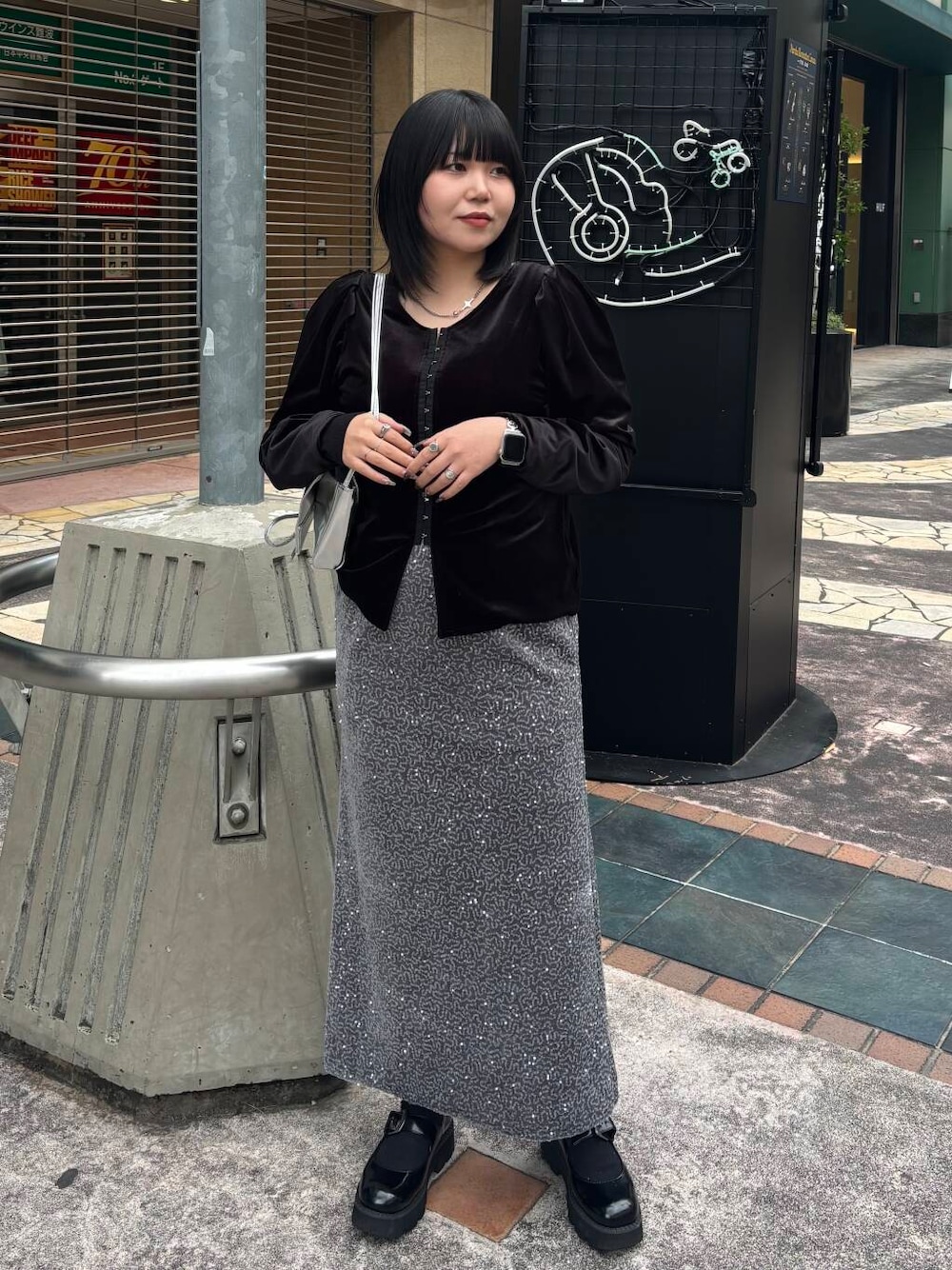 オーバーサイズのニットやカーディガンと相性抜群!バックスリットが入っているので重たくなり過ぎず抜け感のある着こなしが叶います。スニーカー~ブーツまで幅広くマッチし、冬アウターの下から覗かせたスタイリングも華やかな印象にしてくれるのでおすすめです。