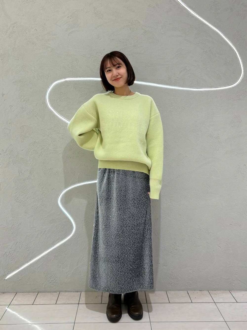 オーバーサイズのニットやカーディガンと相性抜群!バックスリットが入っているので重たくなり過ぎず抜け感のある着こなしが叶います。スニーカー~ブーツまで幅広くマッチし、冬アウターの下から覗かせたスタイリングも華やかな印象にしてくれるのでおすすめです。