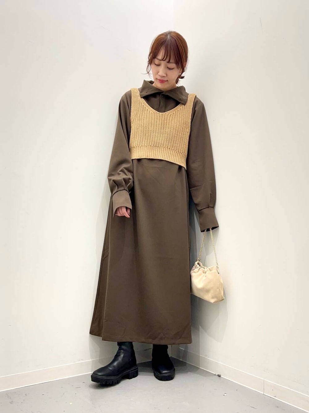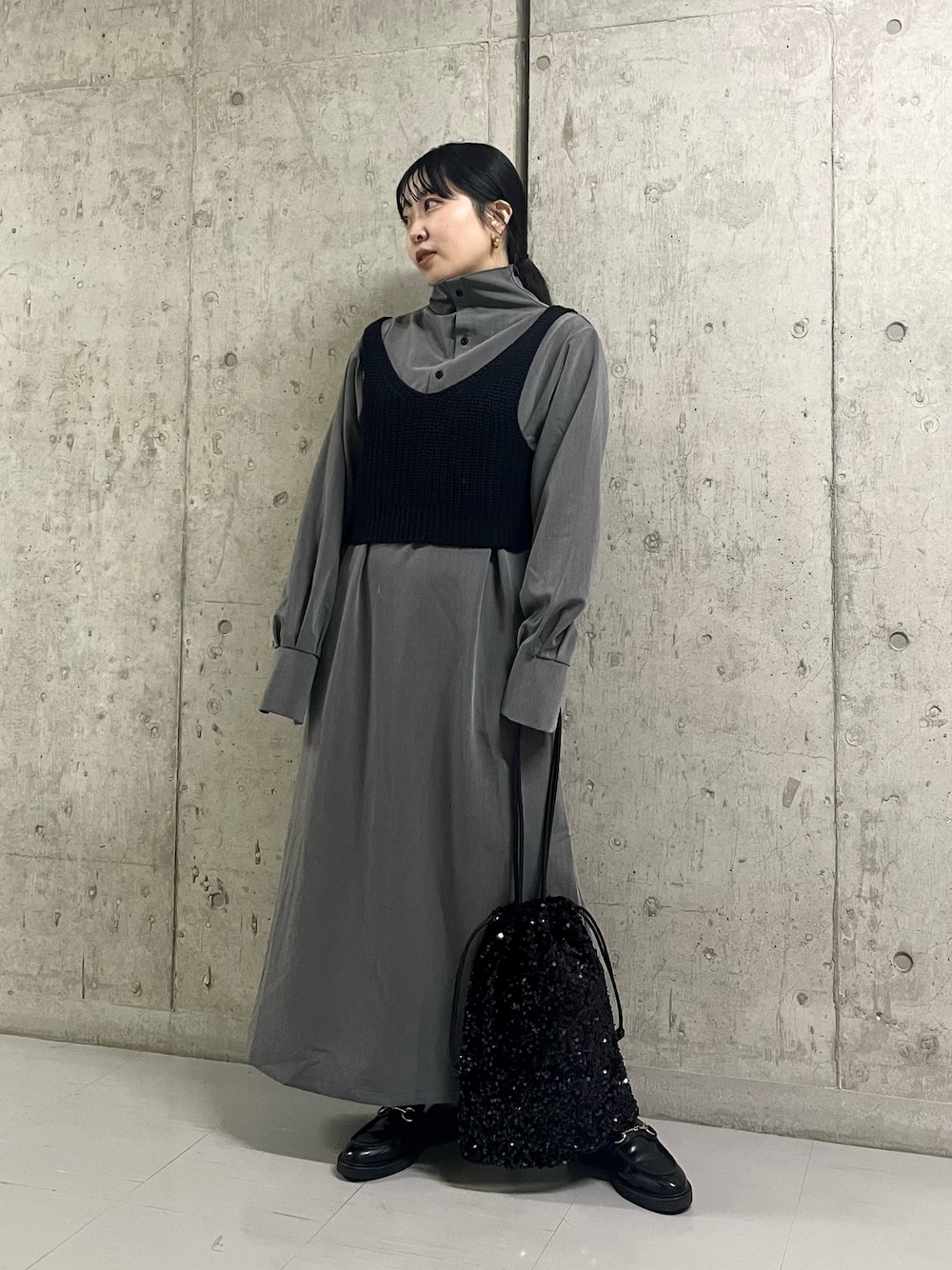 その日の気分によって着こなしの変化を楽しめる、ニットビスチェとワンピースのセットアイテム。セットで着ていただくのはもちろん、程良く身体にフィットするサイズ感がポイントのニットビスチェはお手持ちのトップスと合わせていただけます。首元の釦ディテールが魅力のワンピースはカーディガンやジャケットのインナーにもおすすめ。普段使いのみならず、お出かけにもぴったりな1着です。