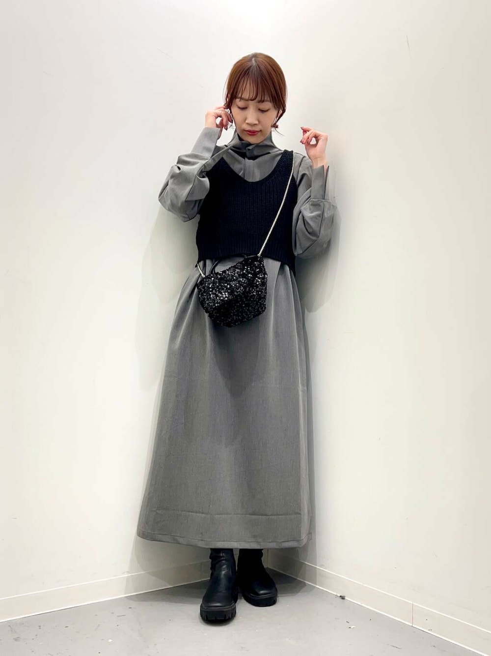 レディライクなアイテムなのでカジュアルな小物を合わせたスタイルもおすすめ。きれいめなシューズを合わせるのも◎