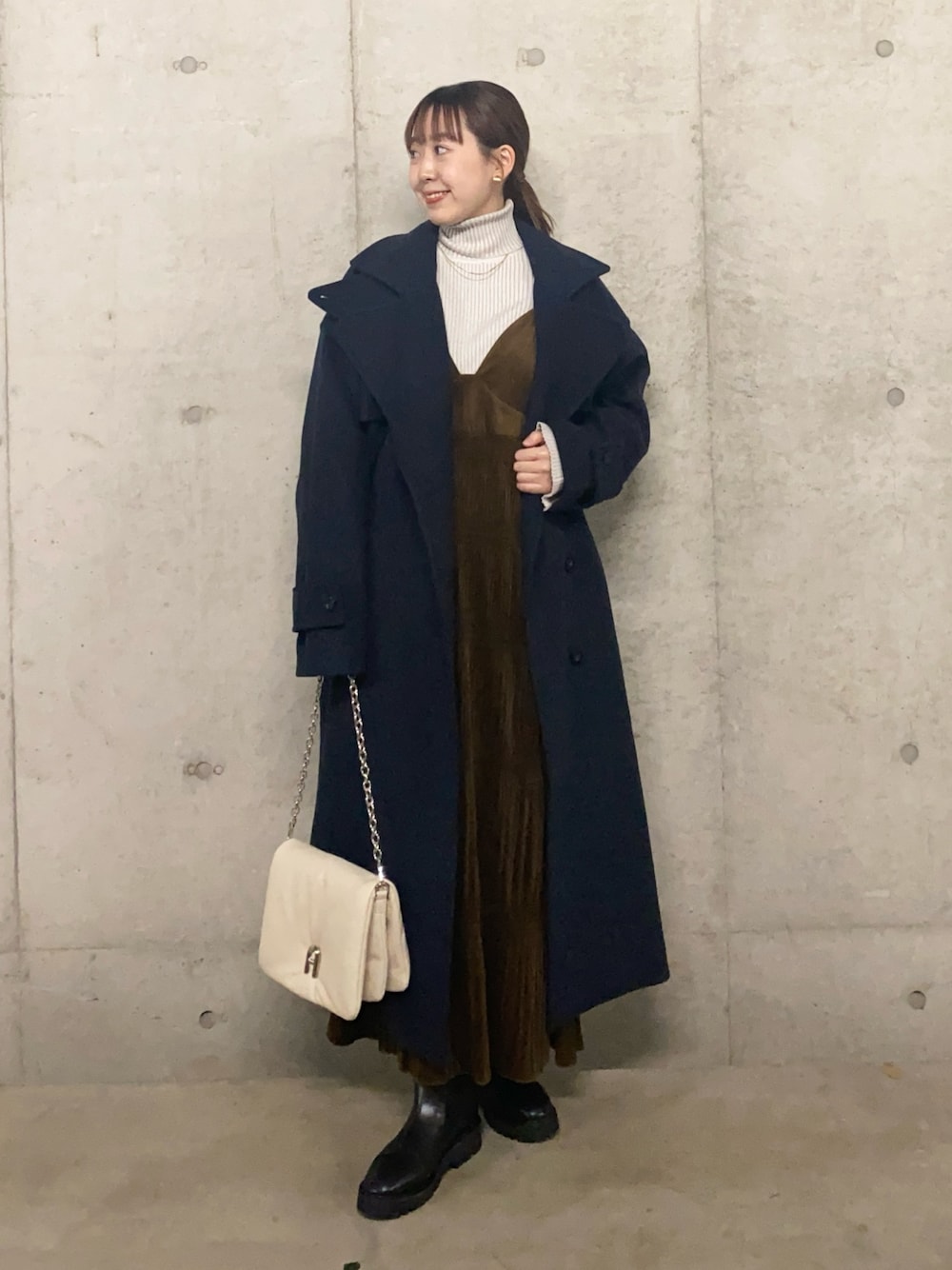 しっかりと長さがあるので合わせるアイテムを選ばず着ていただけます。コクーンパンツやデニムでカジュアルにしたり、Iラインシルエットボトムを合わせるとすっきりと纏まります。