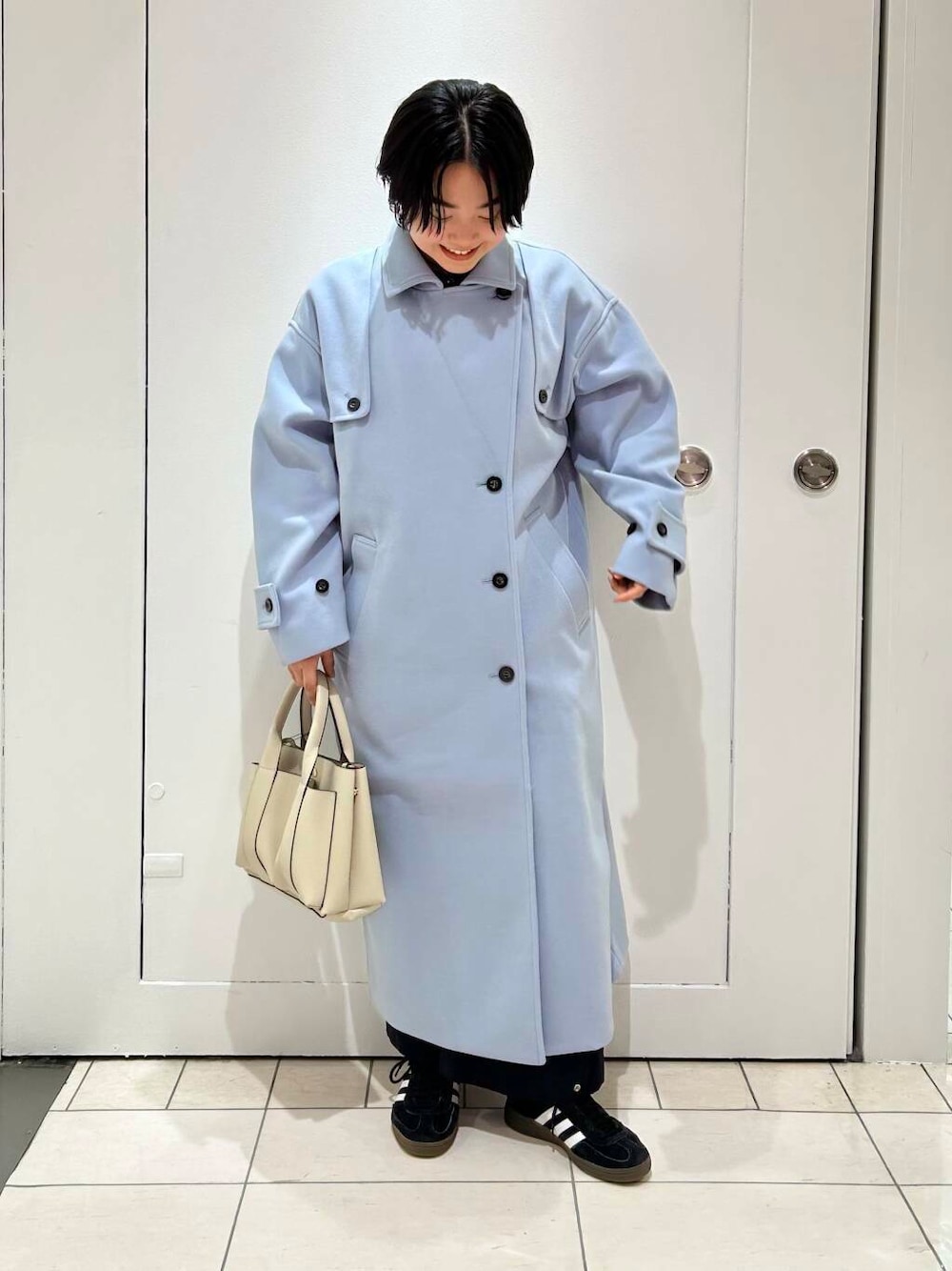 しっかりと長さがあるので合わせるアイテムを選ばず着ていただけます。コクーンパンツやデニムでカジュアルにしたり、Iラインシルエットボトムを合わせるとすっきりと纏まります。