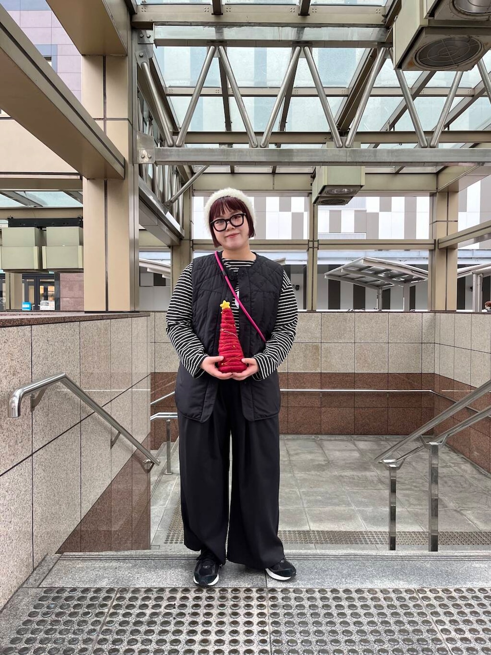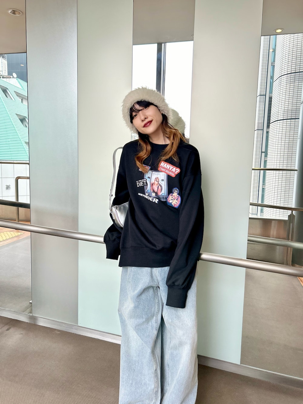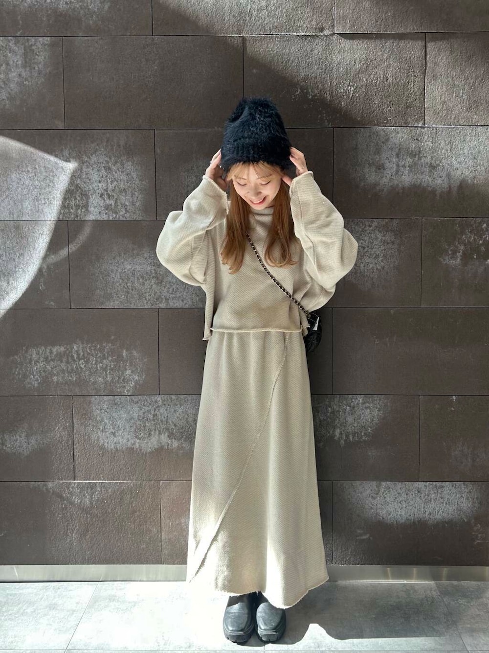 サイズ感が大きめな、柔らかな被り心地が魅力のフェザーヤーンビーニー。大きめなのでトップの周りを後ろに倒した被り方がおすすめ。秋冬コーデを格上げしてくれるワンポイントアイテムです。
