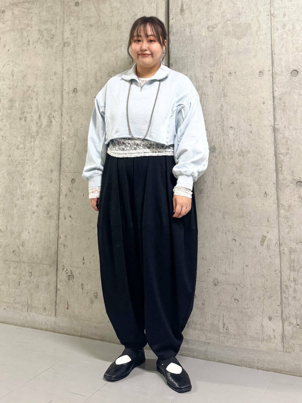 カジュアルコーデにぴったりなアイテムは、レーストップスをインナーに持ってくるとよりこなれ感がましたスタイリングが完成します。ショート丈なのでハイウエストボトムと相性抜群です。