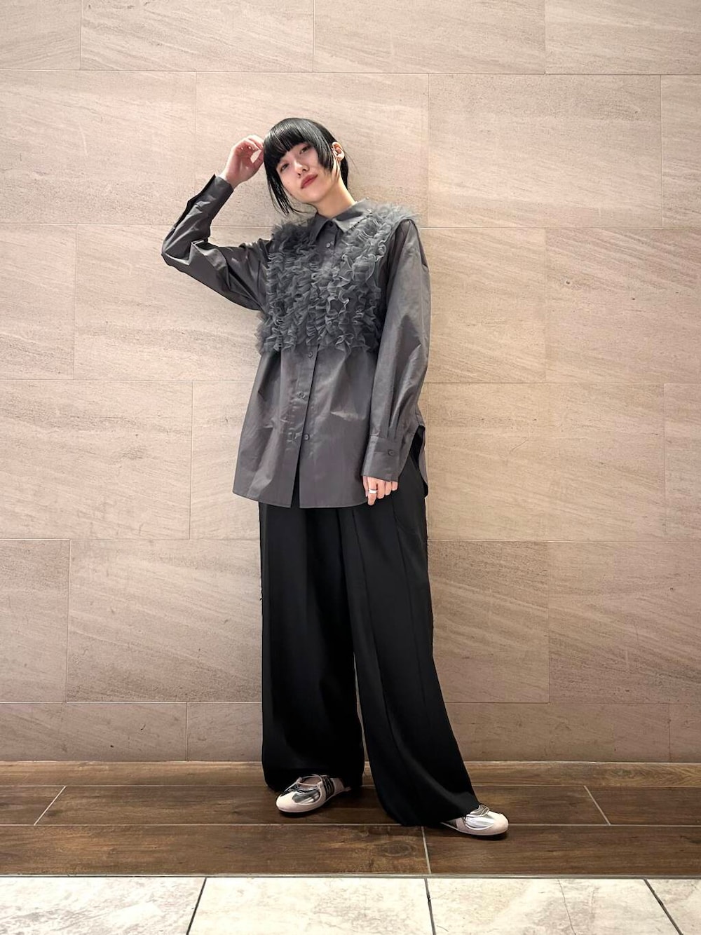 セットの着用はもちろん、シャツはカーディガンやジャケットのインナーに入れたり、コンパクトトップスの上からチュールをレイヤードしたり様々な着こなしが楽しめます。いろんなテイストに合わせやすいアイテムです。